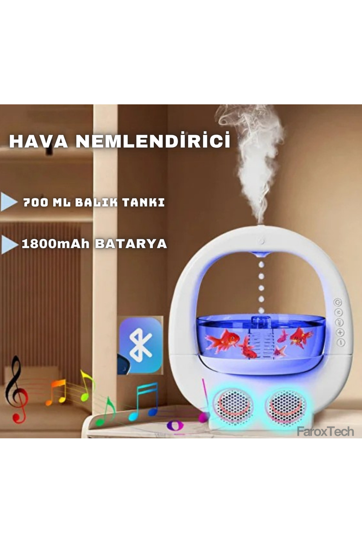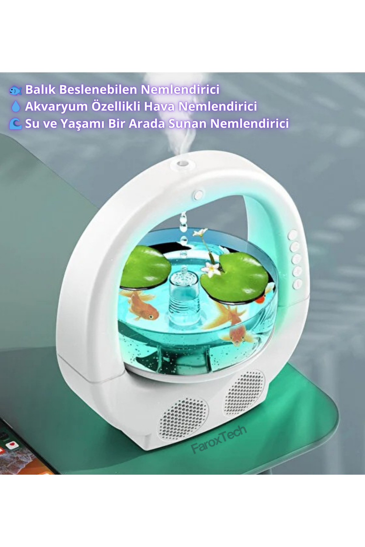 Akvaryumlu Hava Nemlendirici | 700ml Balık Tankı & LED Işıklı Tasarım | Bluetooth Hoparlörlü FaroxTech-balik-tanki