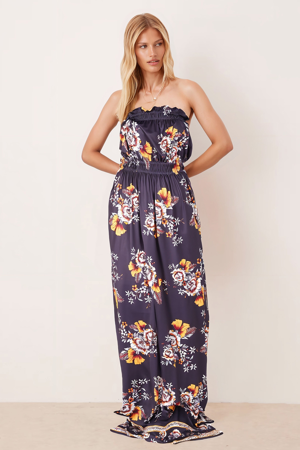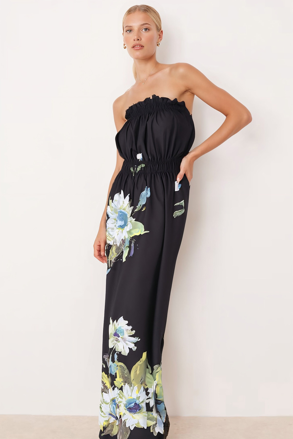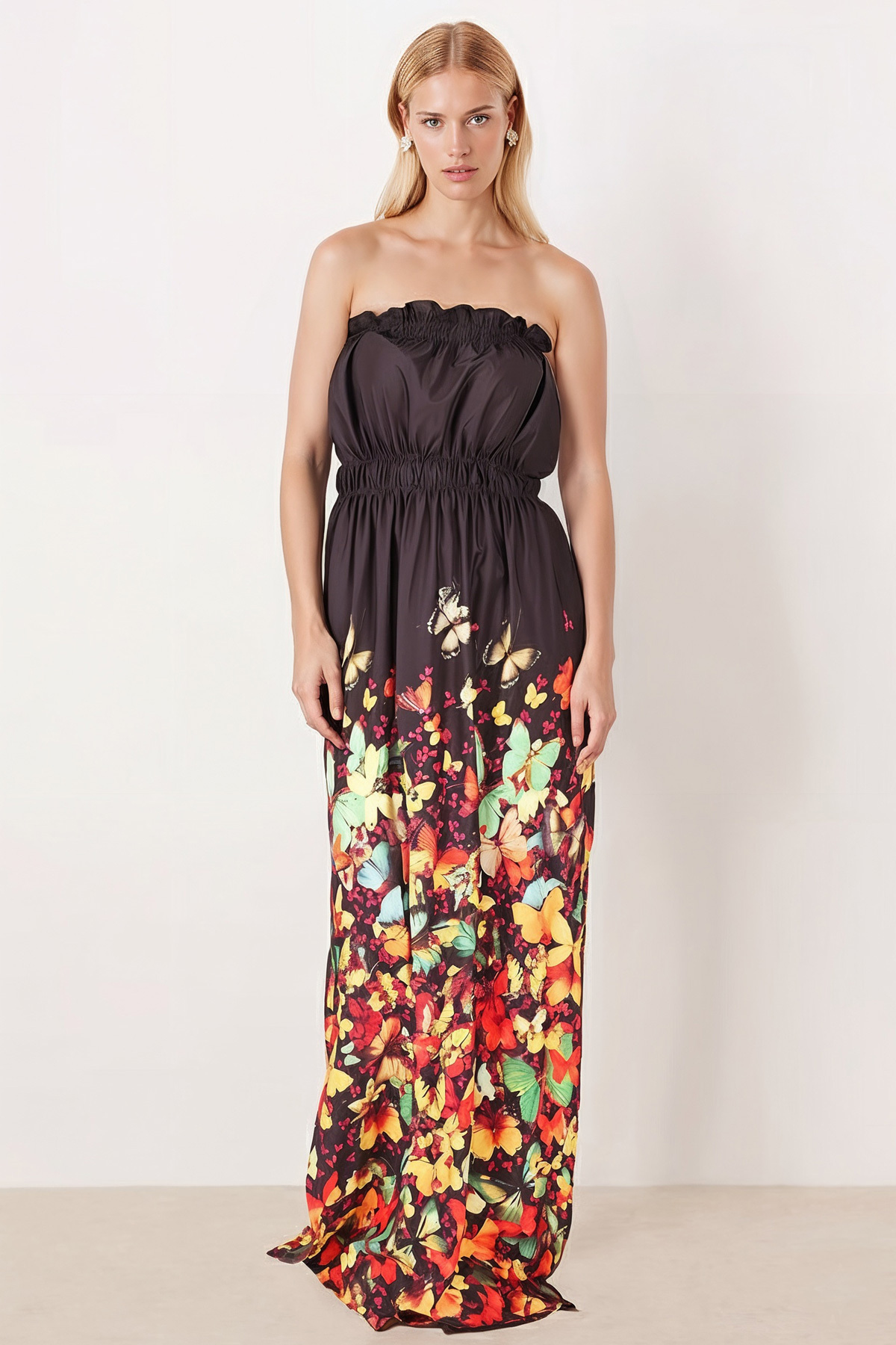 Kadın Siyah Robası Lastikli Straplez Yırtmaçlı Uzun Elbise ARM-25Y001105 Kadın Siyah Robası Lastikli Straplez Yırtmaçlı Uzun Elbise ARM-25Y001105 XL
