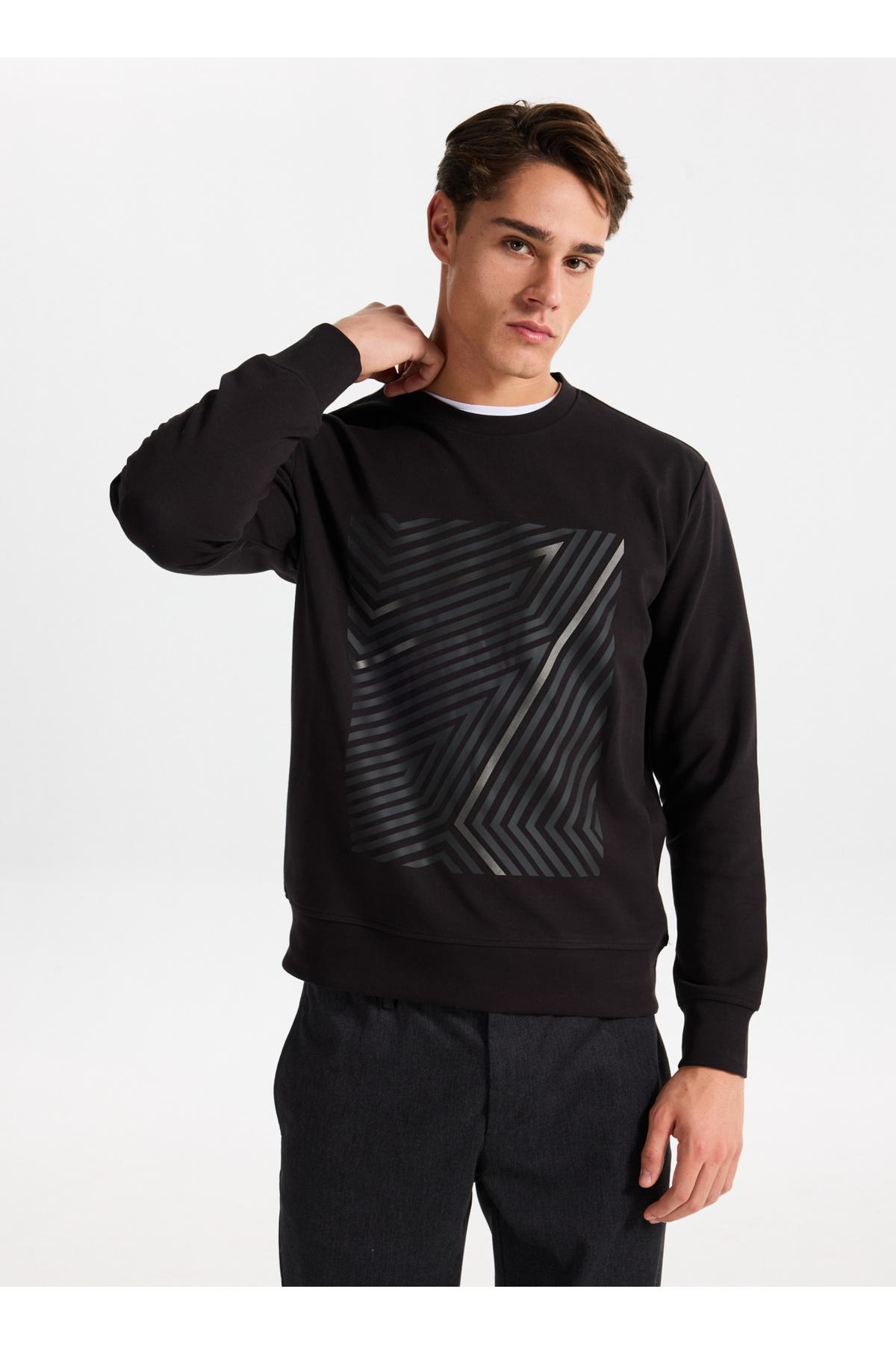 Bisiklet Yaka Dalga Baskılı Erkek Sweatshirt Bisiklet Yaka Dalga Baskılı Erkek Sweatshirt GU24MFW08018 2XL
