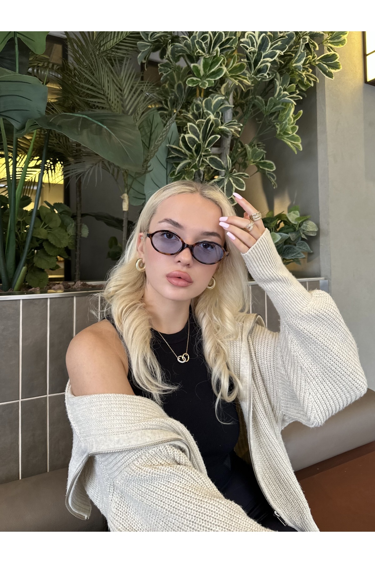 Leopar Çerçeveli Mavi Camlı Vintage Güneş Gözlüğü Leopar Çerçeveli Mavi Camlı Vintage Güneş Gözlüğü TH04ZS تک سایز