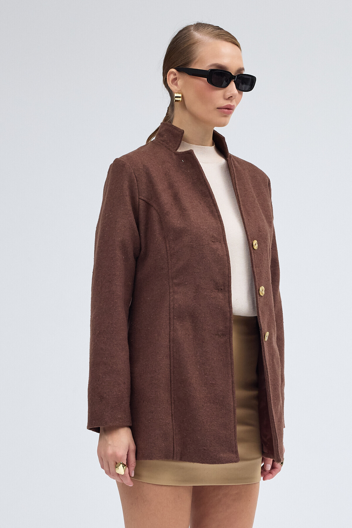 Tasarım Yaka Kısa Boy Kaşe Kaban Tasarım Yaka Kısa Boy Kaşe Kaban y18sc11kahve16 2XL