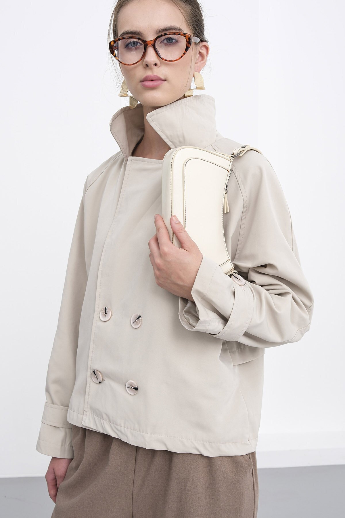 Kadın Taş Çift Düğmeli Kruvaze Yaka Kısa Astarlı Trençkot Vs01233 Kadın Taş Çift Düğmeli Kruvaze Yaka Kısa Astarlı Trençkot Vs01233 VS01233 L
