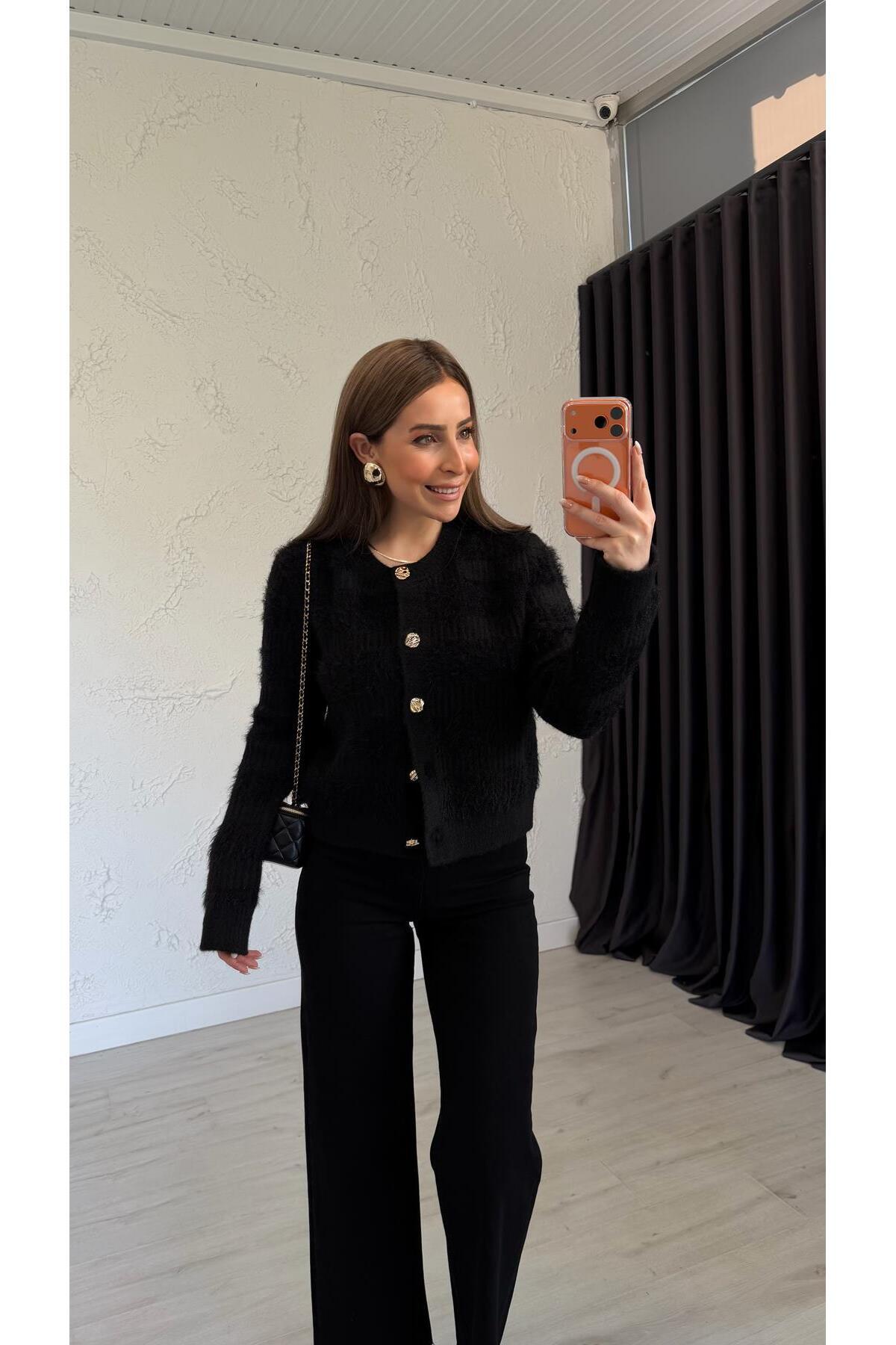 Sakallı Yumuşak Dokulu Triko Hırka Siyah Sakallı Yumuşak Dokulu Triko Hırka Siyah 7624 Standart