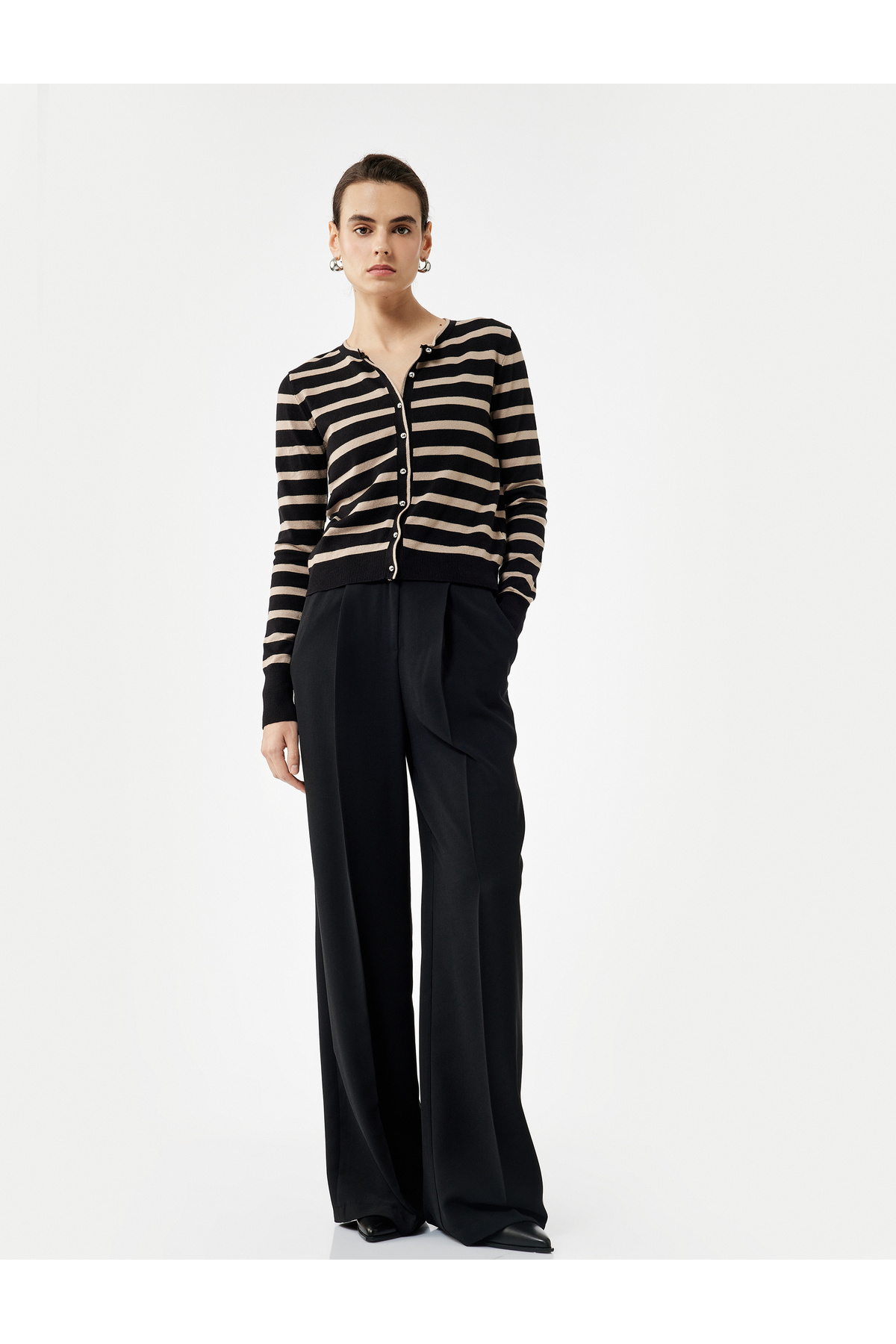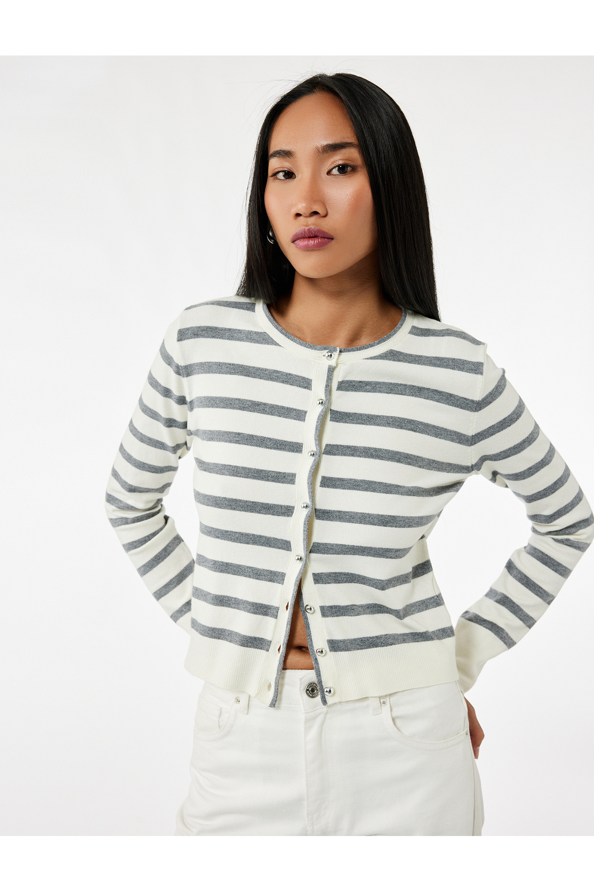 Uzun Kollu Bisiklet Yaka Çizgili Triko Hırka Uzun Kollu Bisiklet Yaka Çizgili Triko Hırka 6WAK90094HT XL