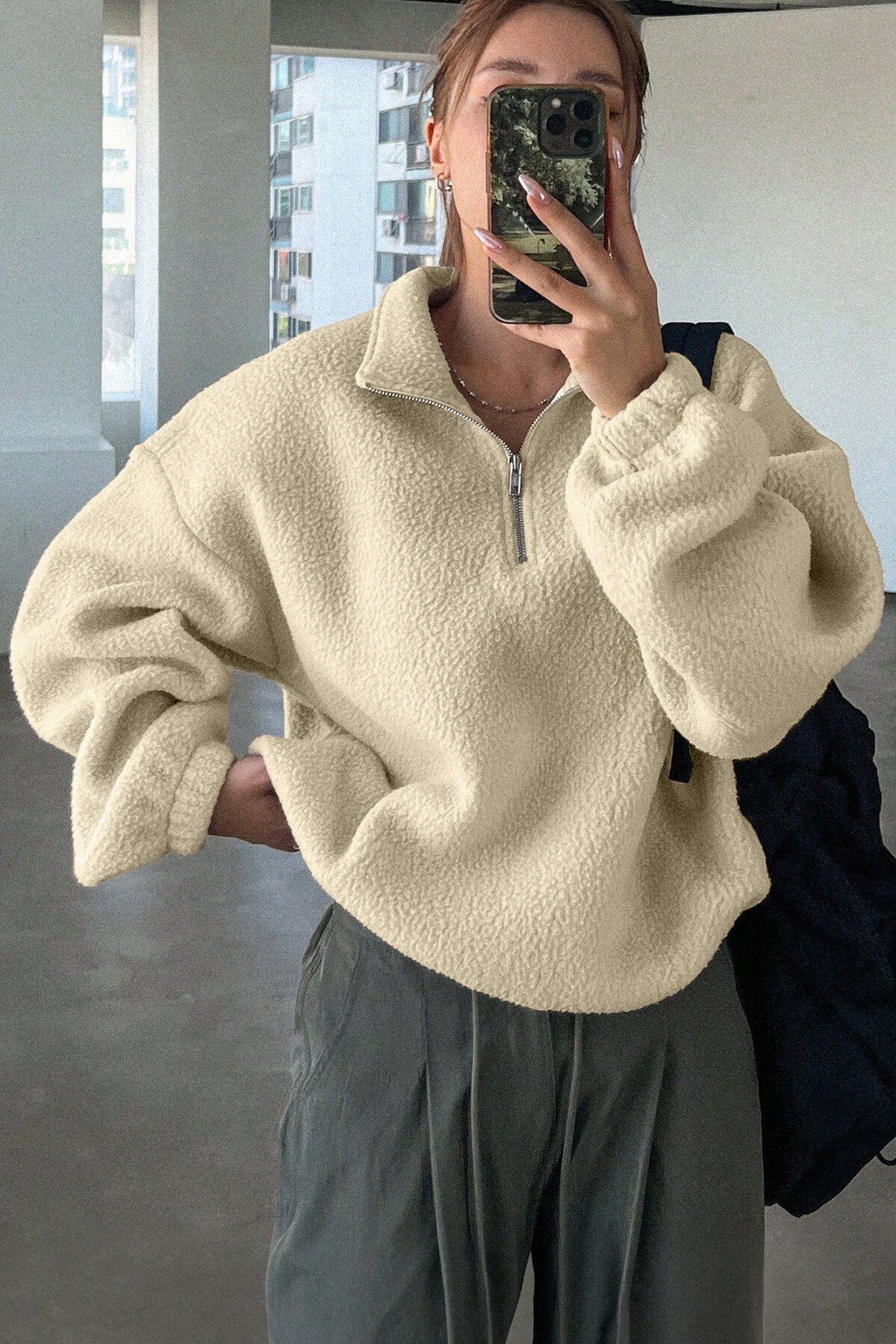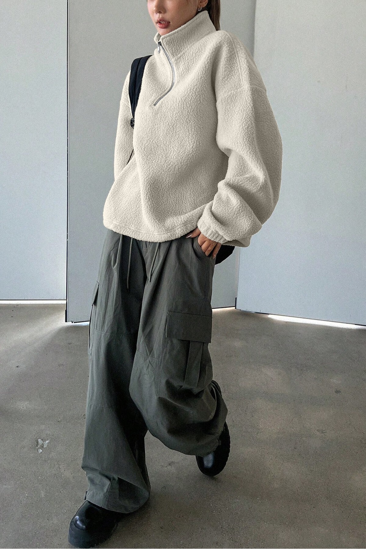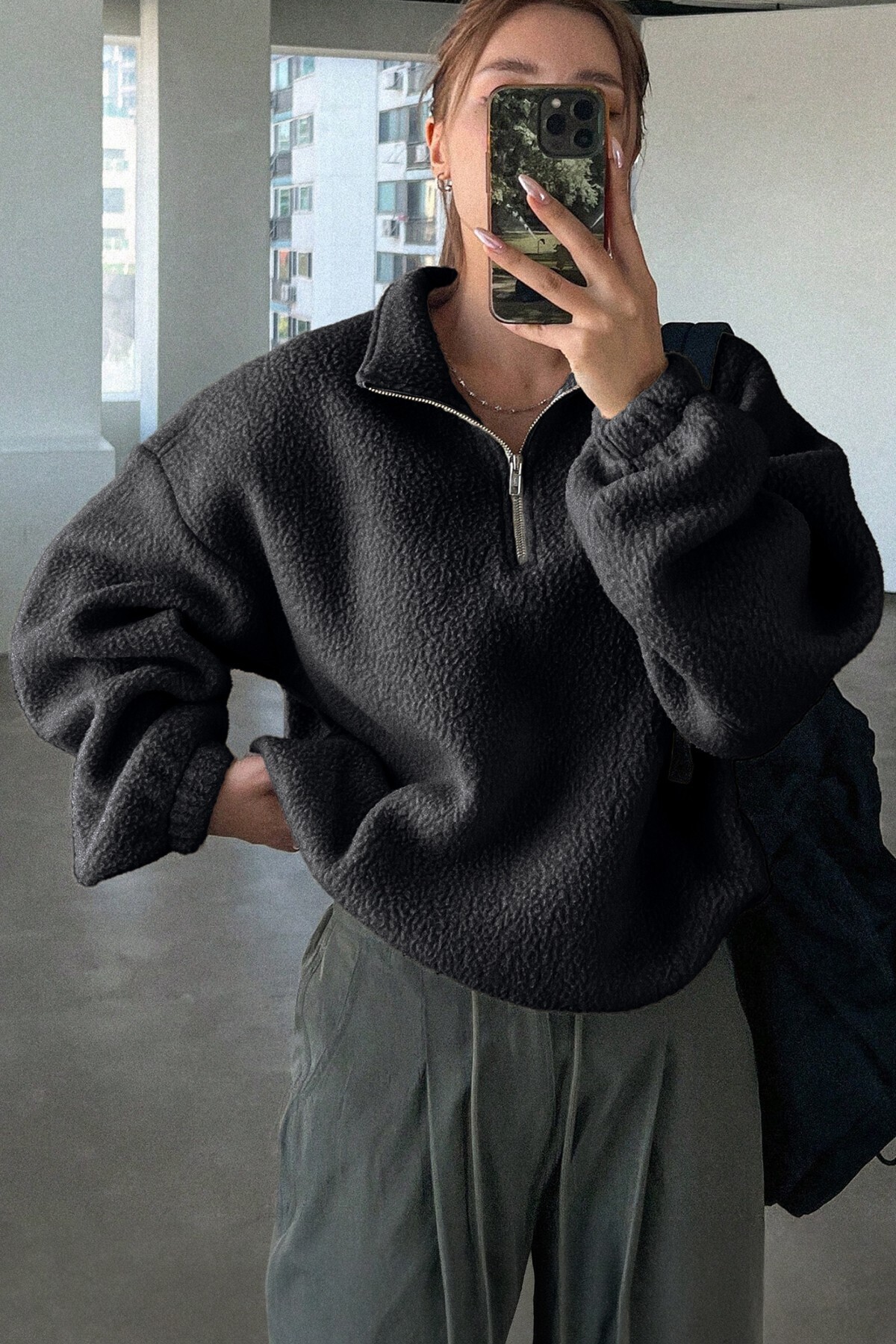 Kadın Ultra Isı Peluş Sherpa Oversize Yarım Metal Fermuar Lastik Ayarlı Polar Sweatshirt Kadın Ultra Isı Peluş Sherpa Oversize Yarım Metal Fermuar Lastik Ayarlı Polar Sweatshirt 869866296 2XL