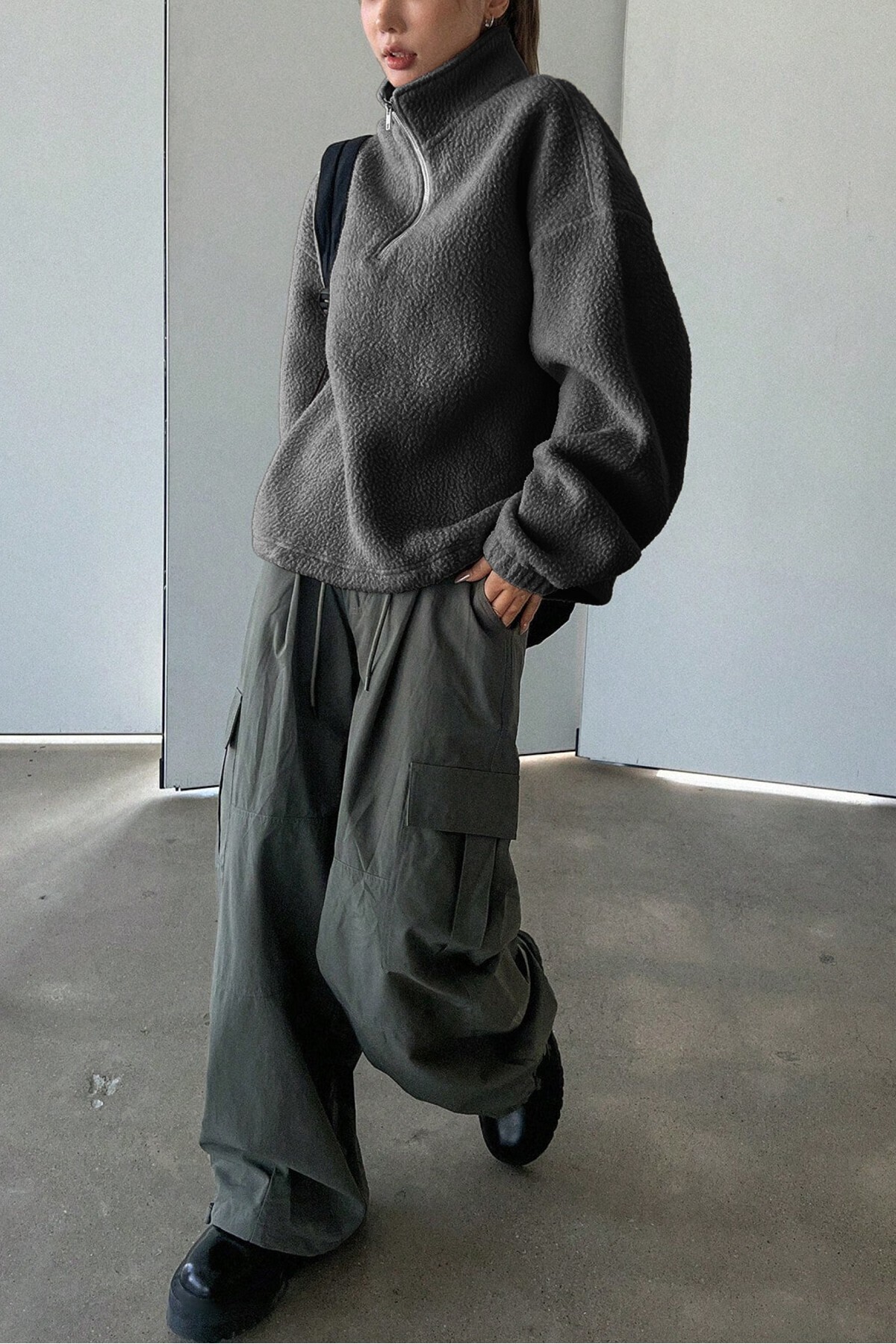 Kadın Ultra Isı Peluş Sherpa Oversize Yarım Metal Fermuar Lastik Ayarlı Polar Sweatshirt Kadın Ultra Isı Peluş Sherpa Oversize Yarım Metal Fermuar Lastik Ayarlı Polar Sweatshirt 869866296 2XL