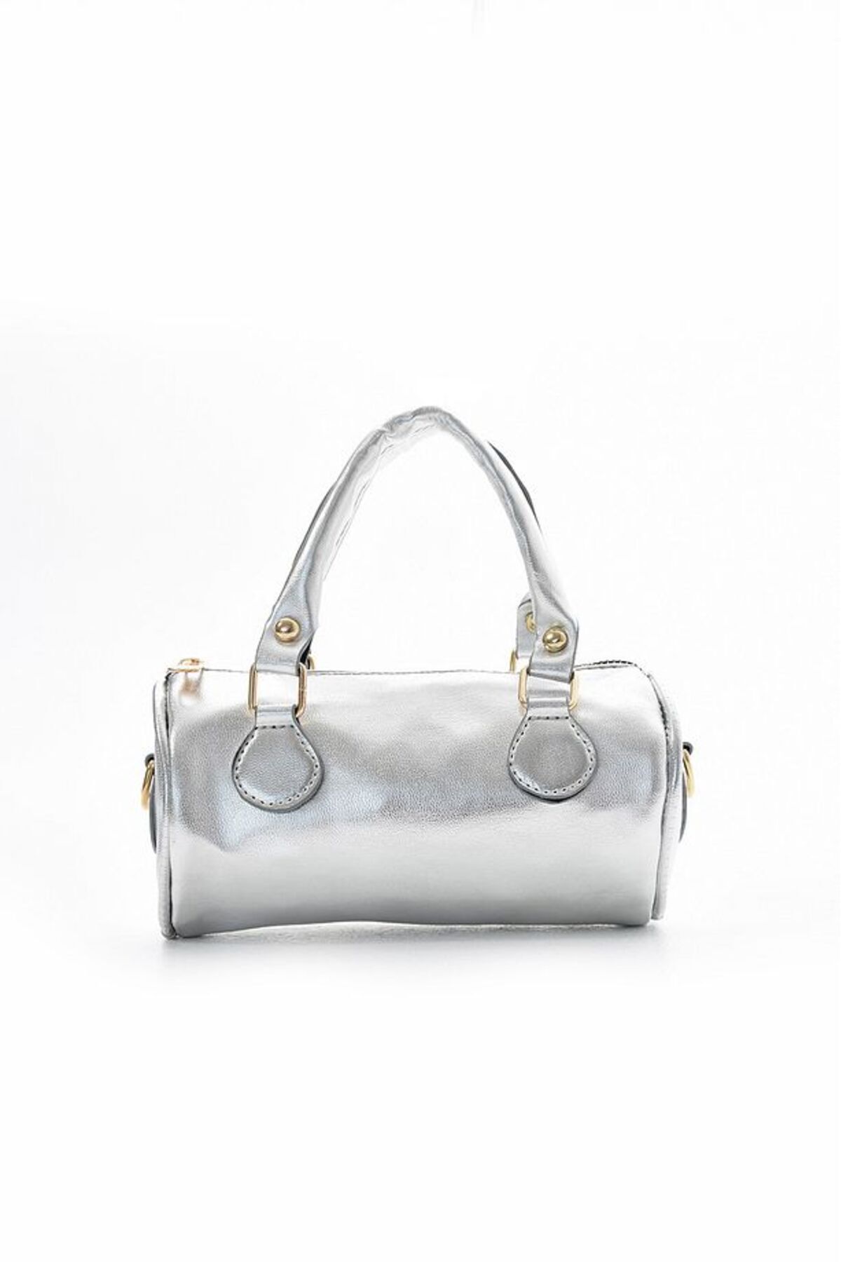 Gümüş Deri Charm Detaylı Kadın El Ve Omuz Çanta Gümüş Deri Charm Detaylı Kadın El Ve Omuz Çanta Glowe Standart