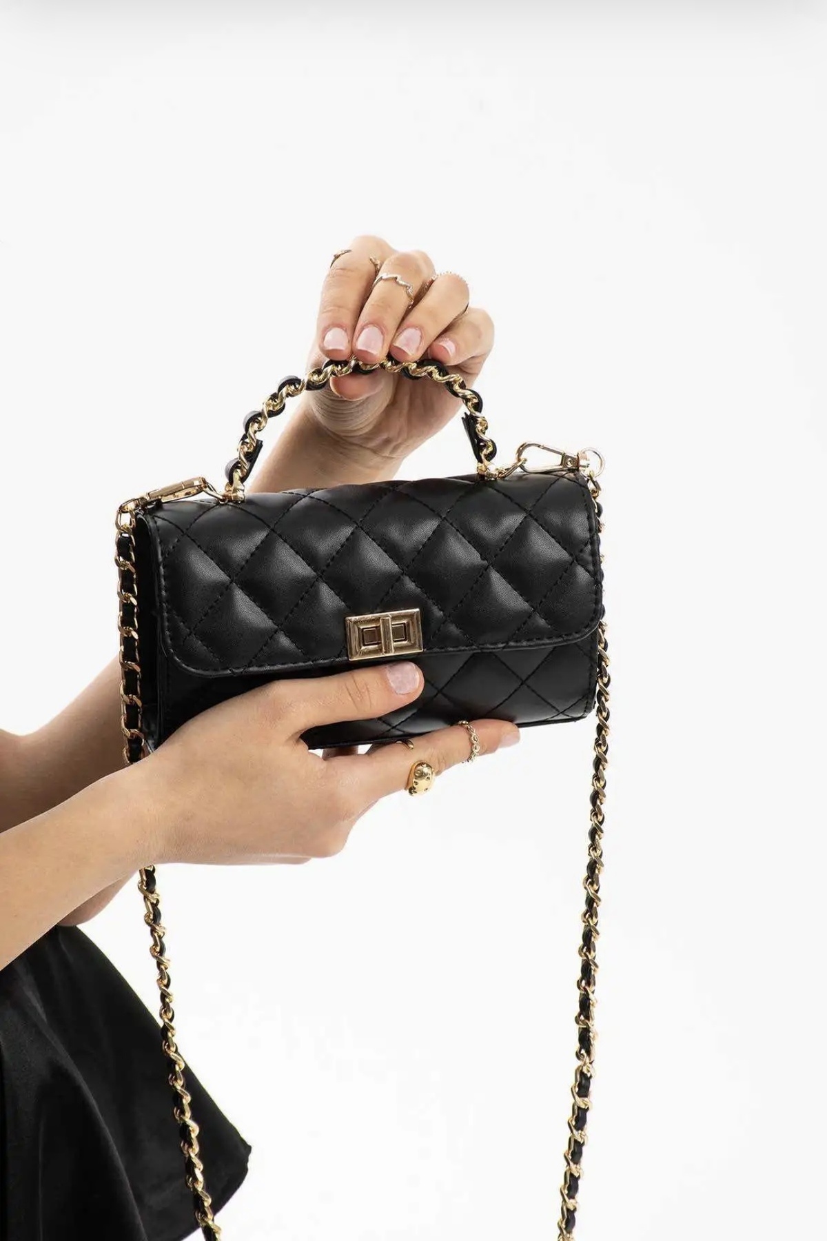 Siyah Deri Zincir Askı Kadın El Ve Omuz Çanta Siyah Deri Zincir Askı Kadın El Ve Omuz Çanta Vione Standart
