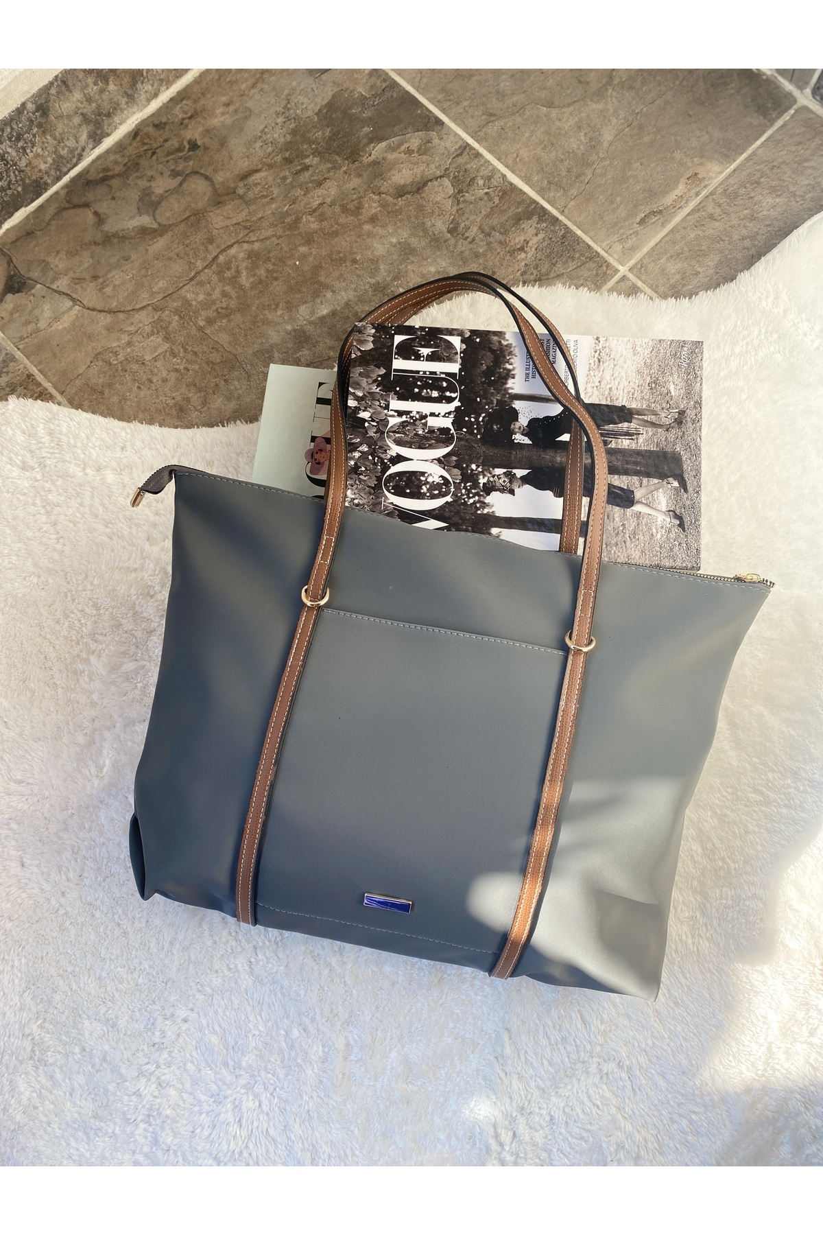 Çift Saplı Shopper Omuz Çantası Çift Saplı Shopper Omuz Çantası RAFIA تک سایز