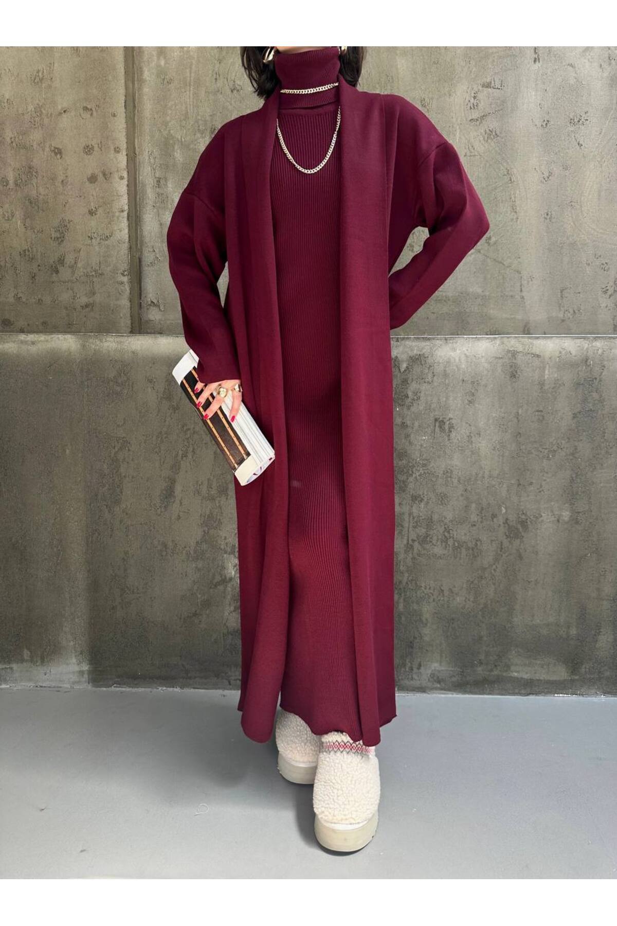 Balıkçı Yaka Sıfır Kol Uzun Elbise-Uzun Hırka İkili Kadın Triko Takım Balıkçı Yaka Sıfır Kol Uzun Elbise-Uzun Hırka İkili Kadın Triko Takım 0711421 Standart