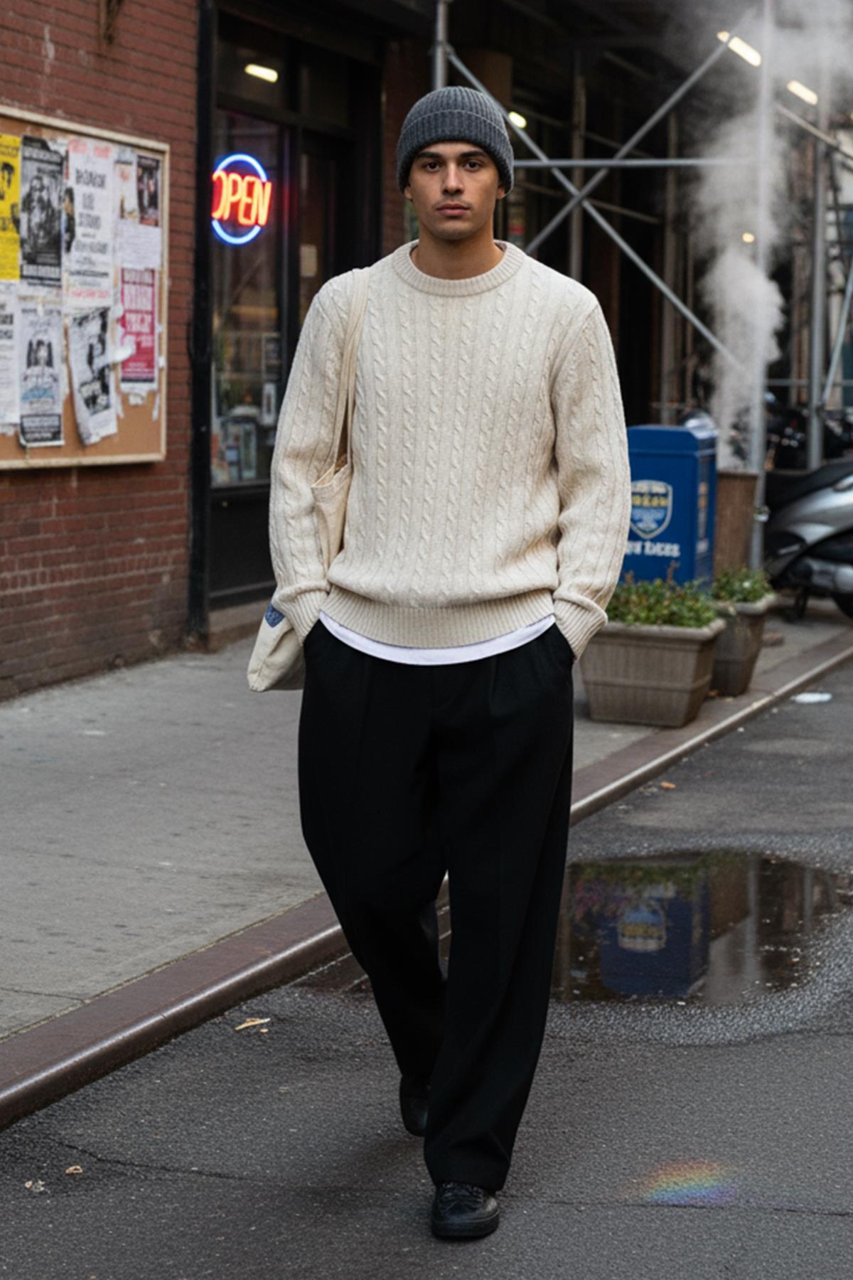 Erkek Saç Örgü Bisiklet Yaka Kalın Triko Kazak Bej 26W2014 Erkek Saç Örgü Bisiklet Yaka Kalın Triko Kazak Bej 26W2014 2XL
