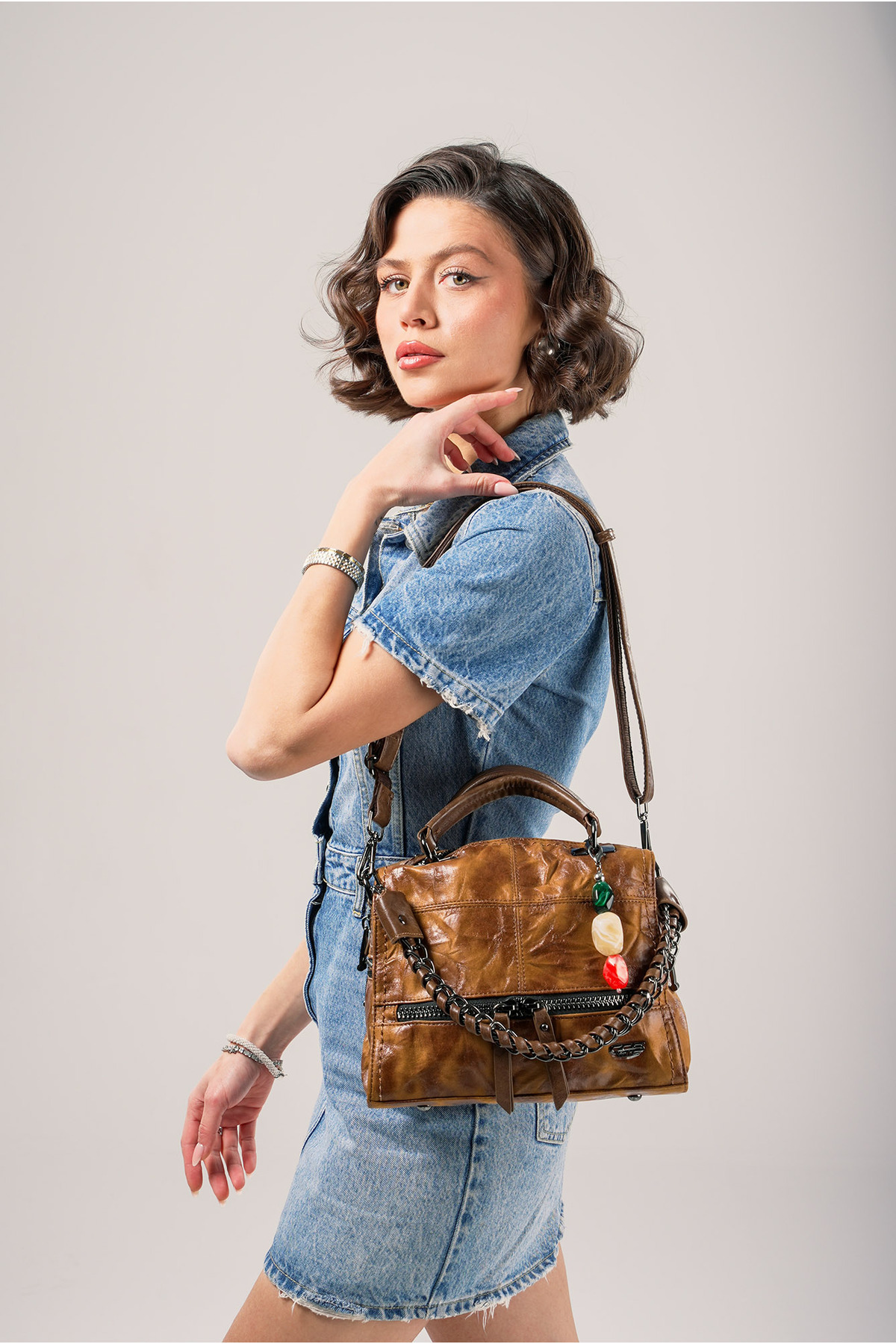 Kadın Taş Detaylı Deri Omuz Ve El Çantası Kadın Taş Detaylı Deri Omuz Ve El Çantası W18030 تک سایز