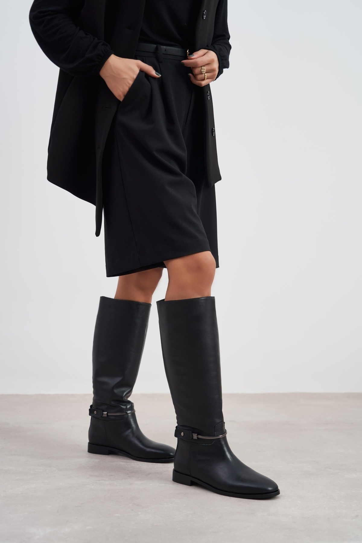 Maude Siyah Hakiki Deri Kalın Topuk Arka Metal Aksesuarlı Kadın Biker Çizme Maude Siyah Hakiki Deri Kalın Topuk Arka Metal Aksesuarlı Kadın Biker Çizme NSN-AHM1344K 40