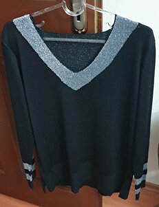 V Yaka Simli Triko Bluz 6K088 V Yaka Simli Triko Bluz 6K088 Standart