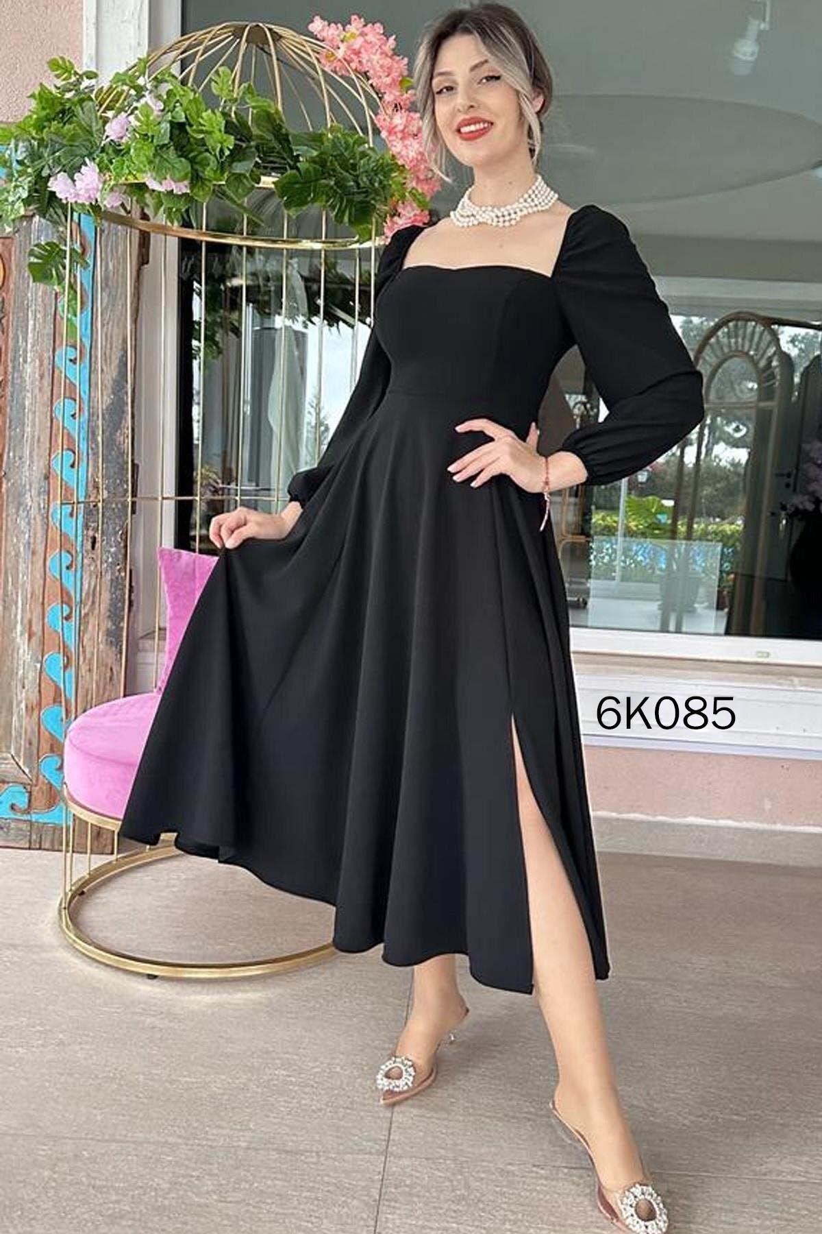 Flok Baskılı Fırfır Detaylı Krep Elbise 6k066 Flok Baskılı Fırfır Detaylı Krep Elbise 6k066 2XL