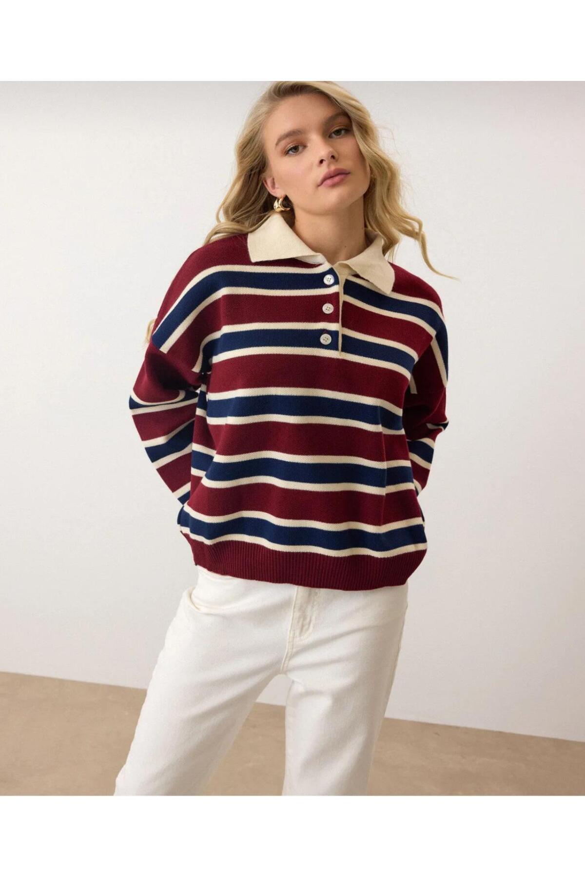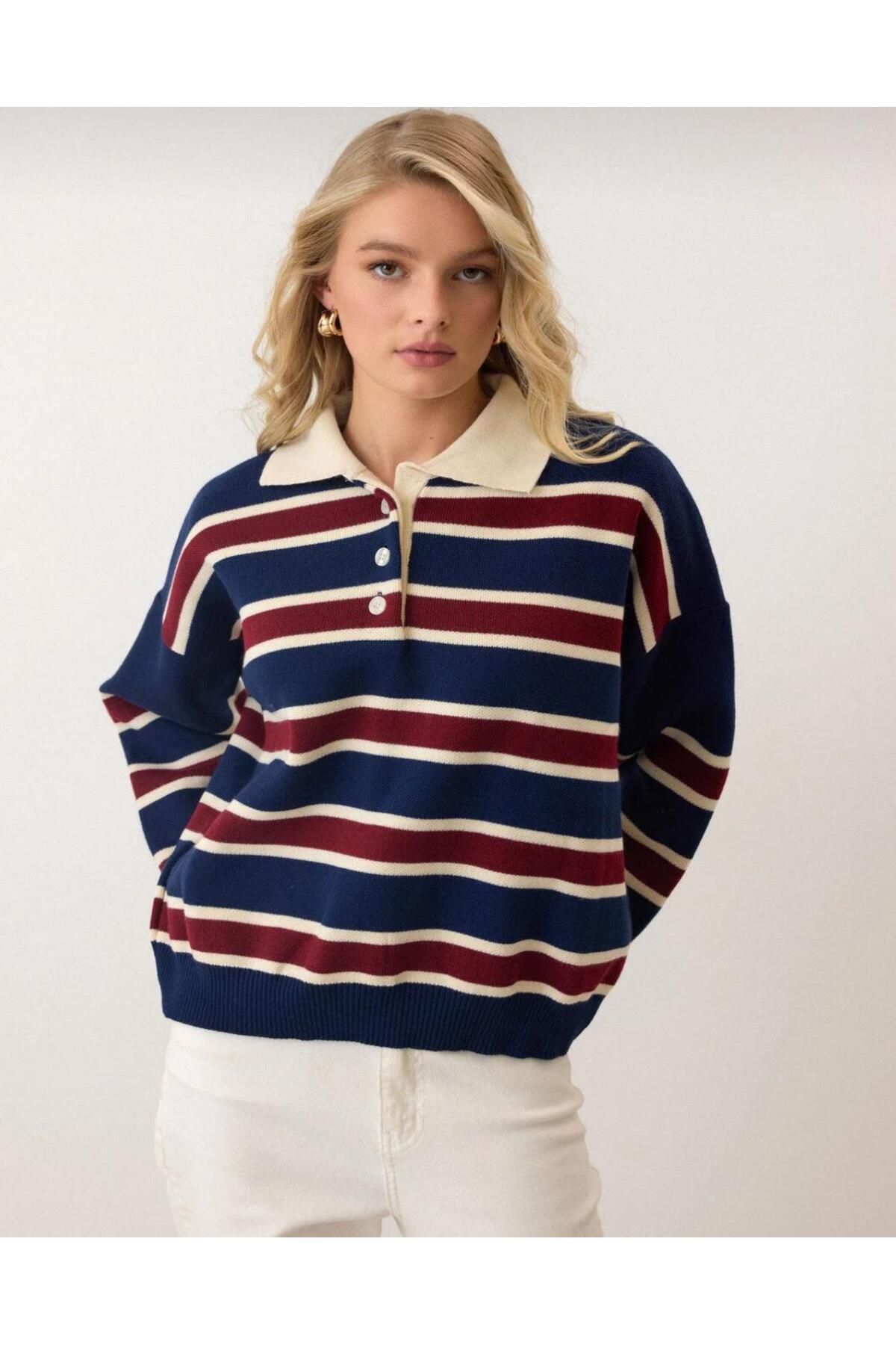 ÇİZGİLİ POLO YAKA TRİKO KAZAK ÇİZGİLİ POLO YAKA TRİKO KAZAK 983115 Standart