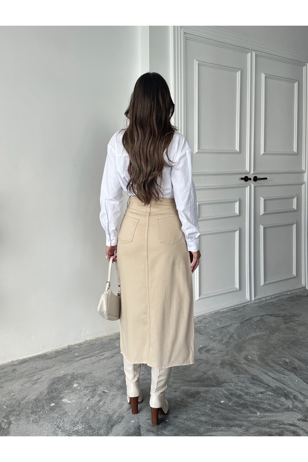 KADIN TAŞ ETEK UCU KESİK ÖN YIRTMAÇ KETEN ETEK KADIN TAŞ ETEK UCU KESİK ÖN YIRTMAÇ KETEN ETEK KN109 42