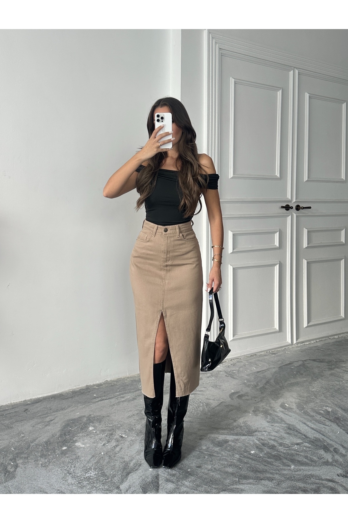 KADIN KAHVERENGİ ETEK UCU KESİK ÖN YIRTMAÇ KETEN ETEK KADIN KAHVERENGİ ETEK UCU KESİK ÖN YIRTMAÇ KETEN ETEK KN109 42