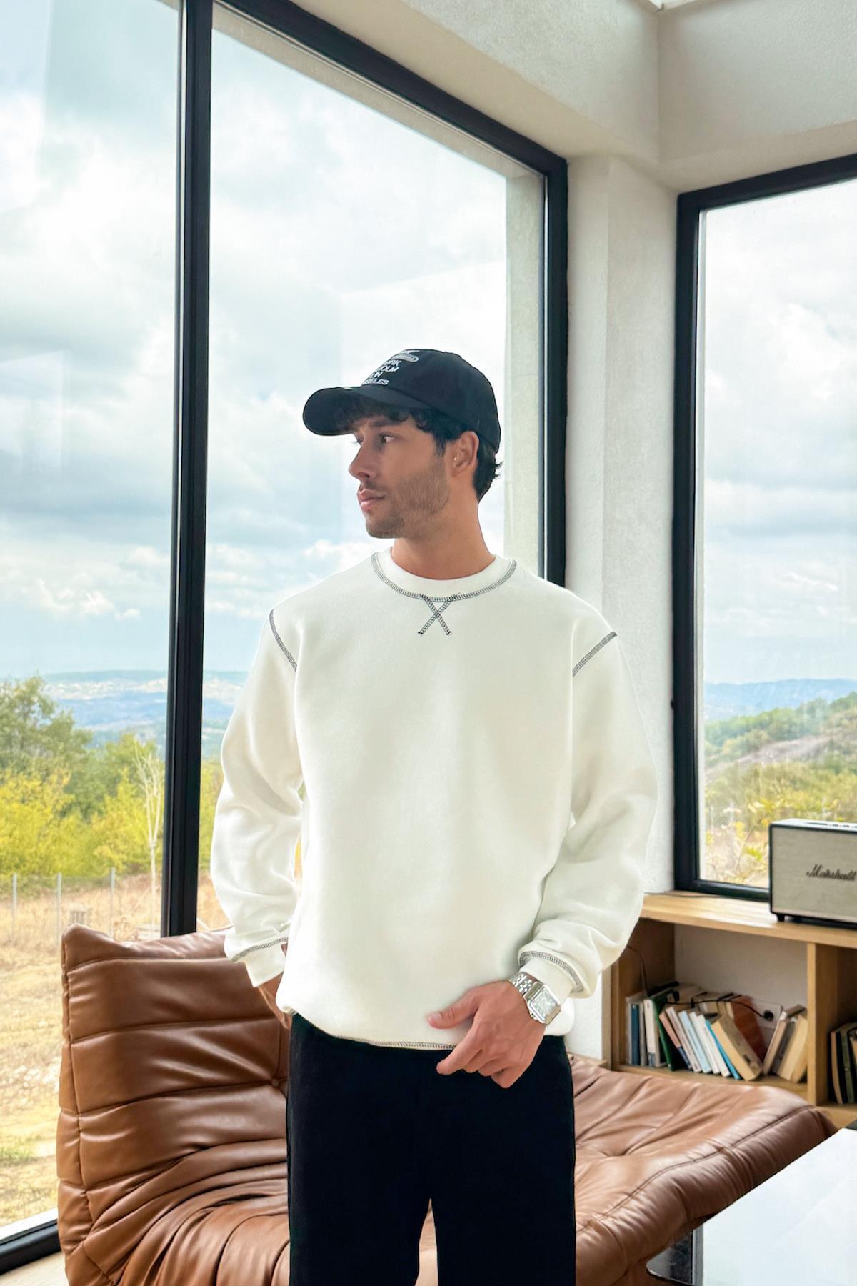 Ön Cep Detay Beyaz Sweatshirt Ön Cep Detay Beyaz Sweatshirt FLAW-015-001-055 XL