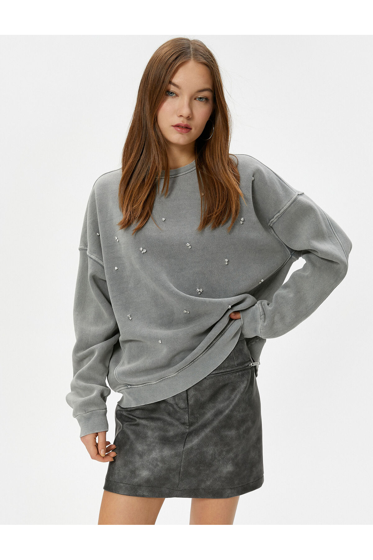 Parlak Taşlı Püsküllü Sweatshirt Parlak Taşlı Püsküllü Sweatshirt 01334811 L