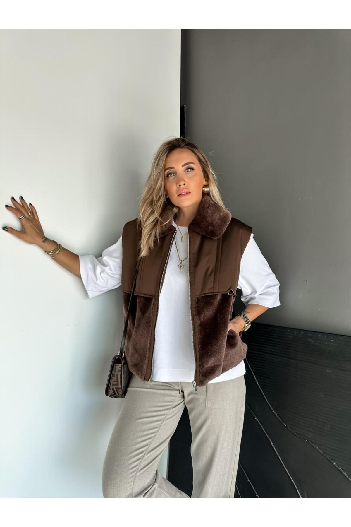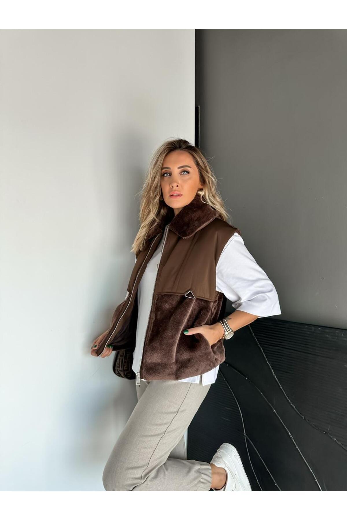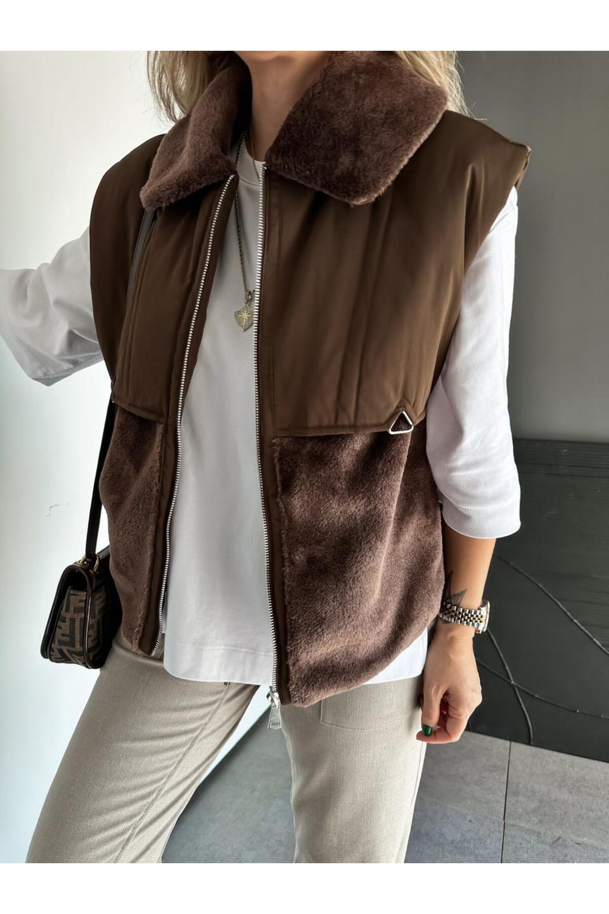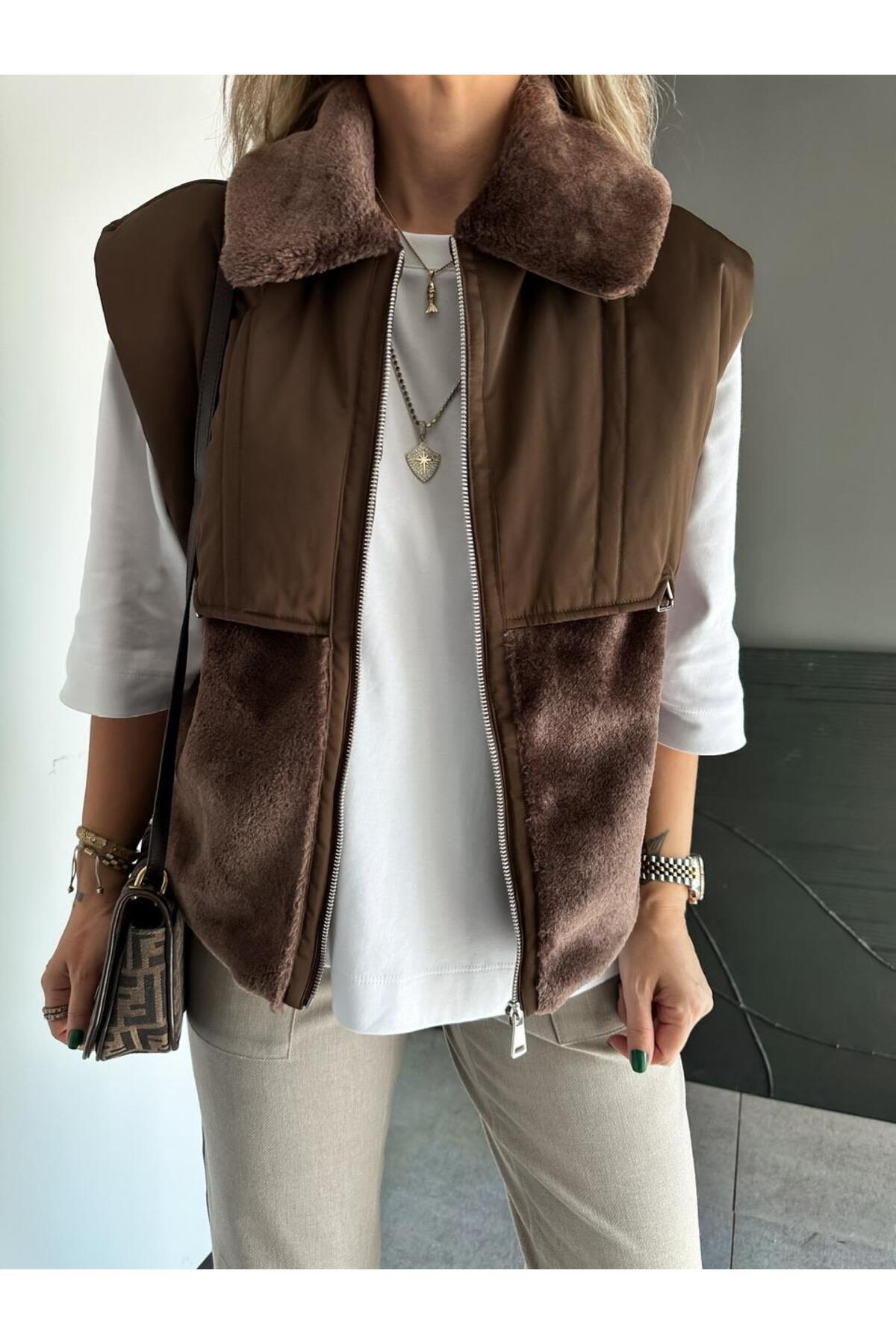 Kahve Kürk Parçalı Spor Yelek Kahve Kürk Parçalı Spor Yelek 2732 L