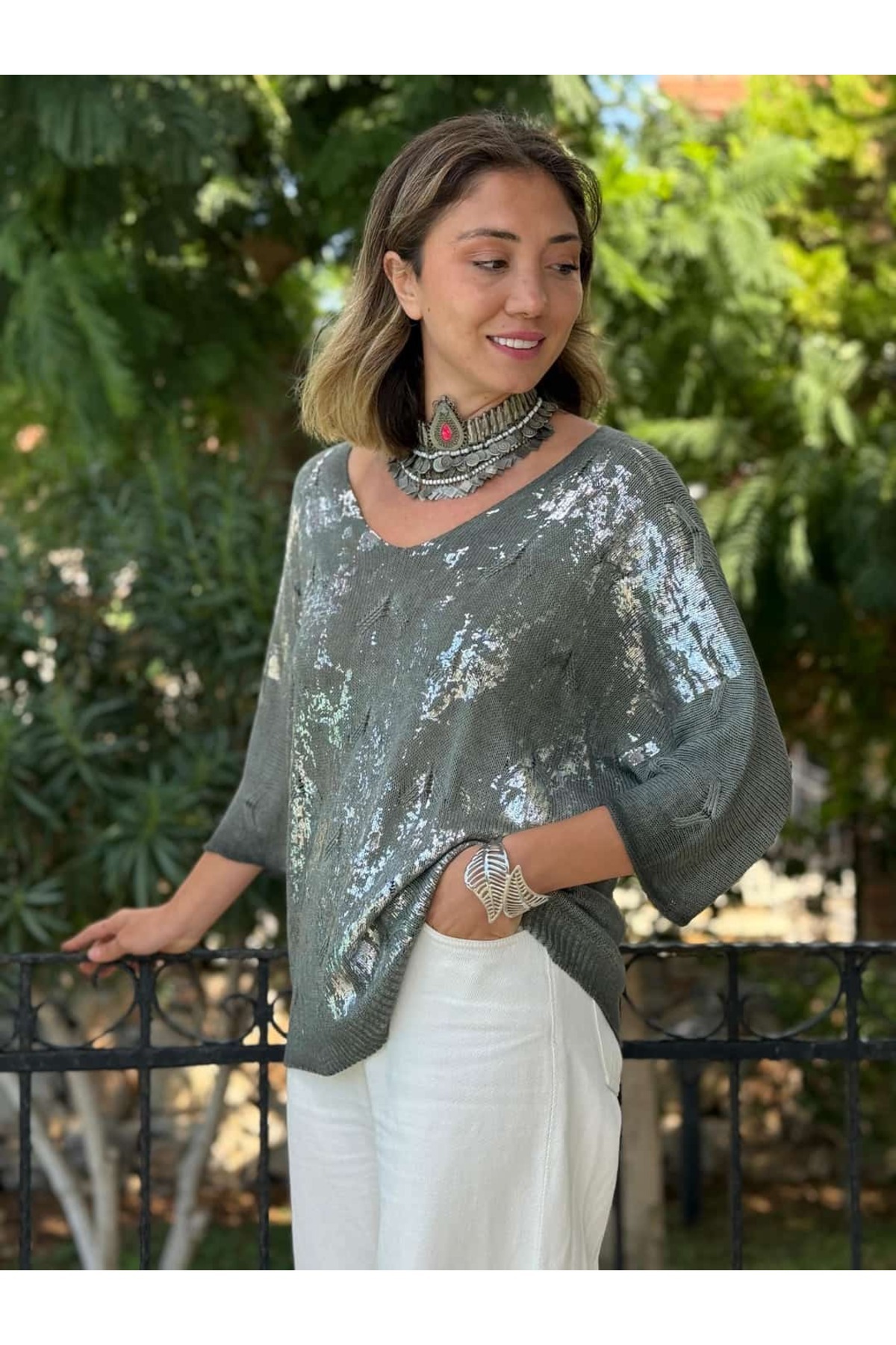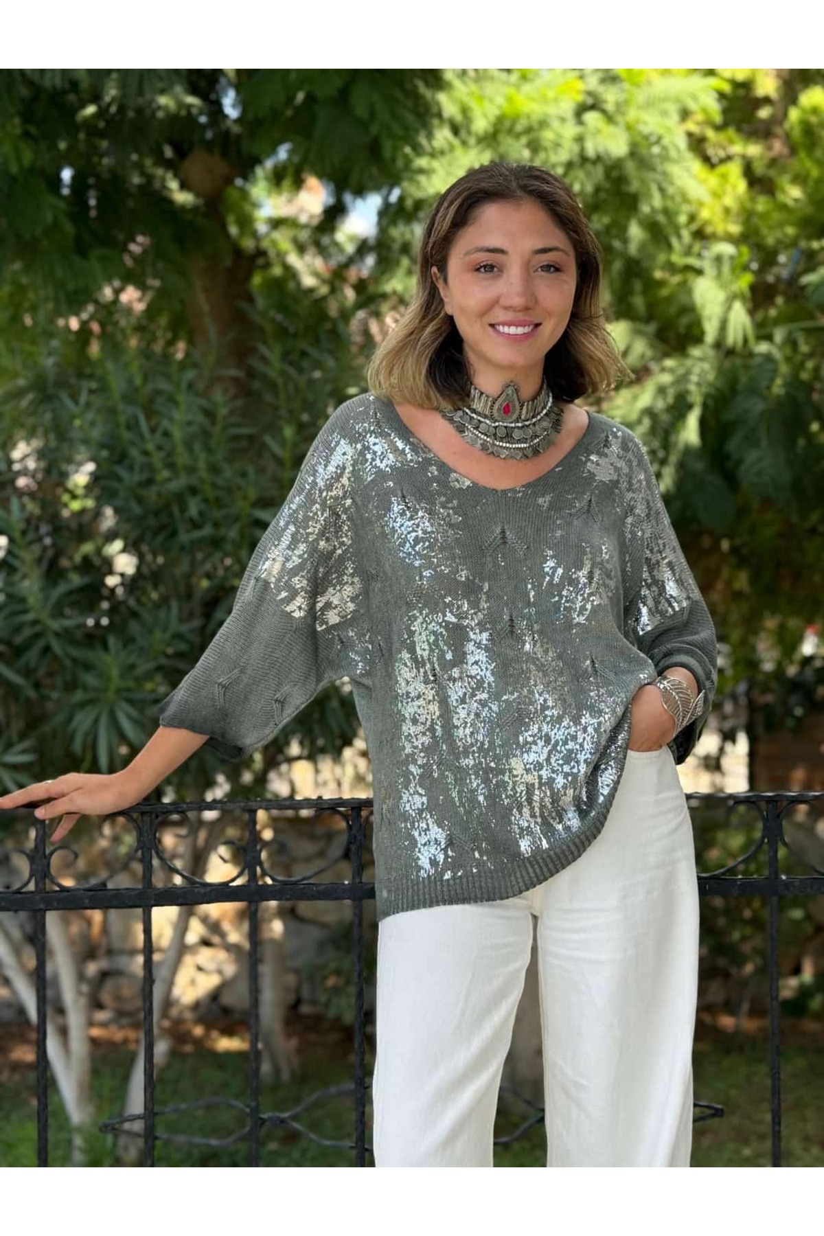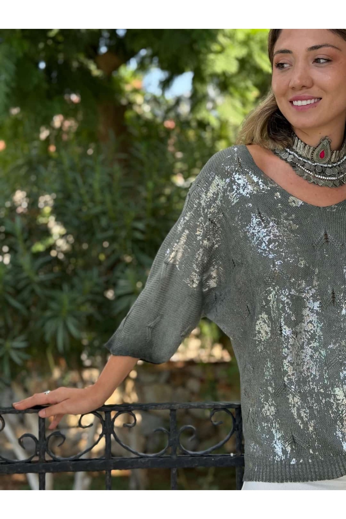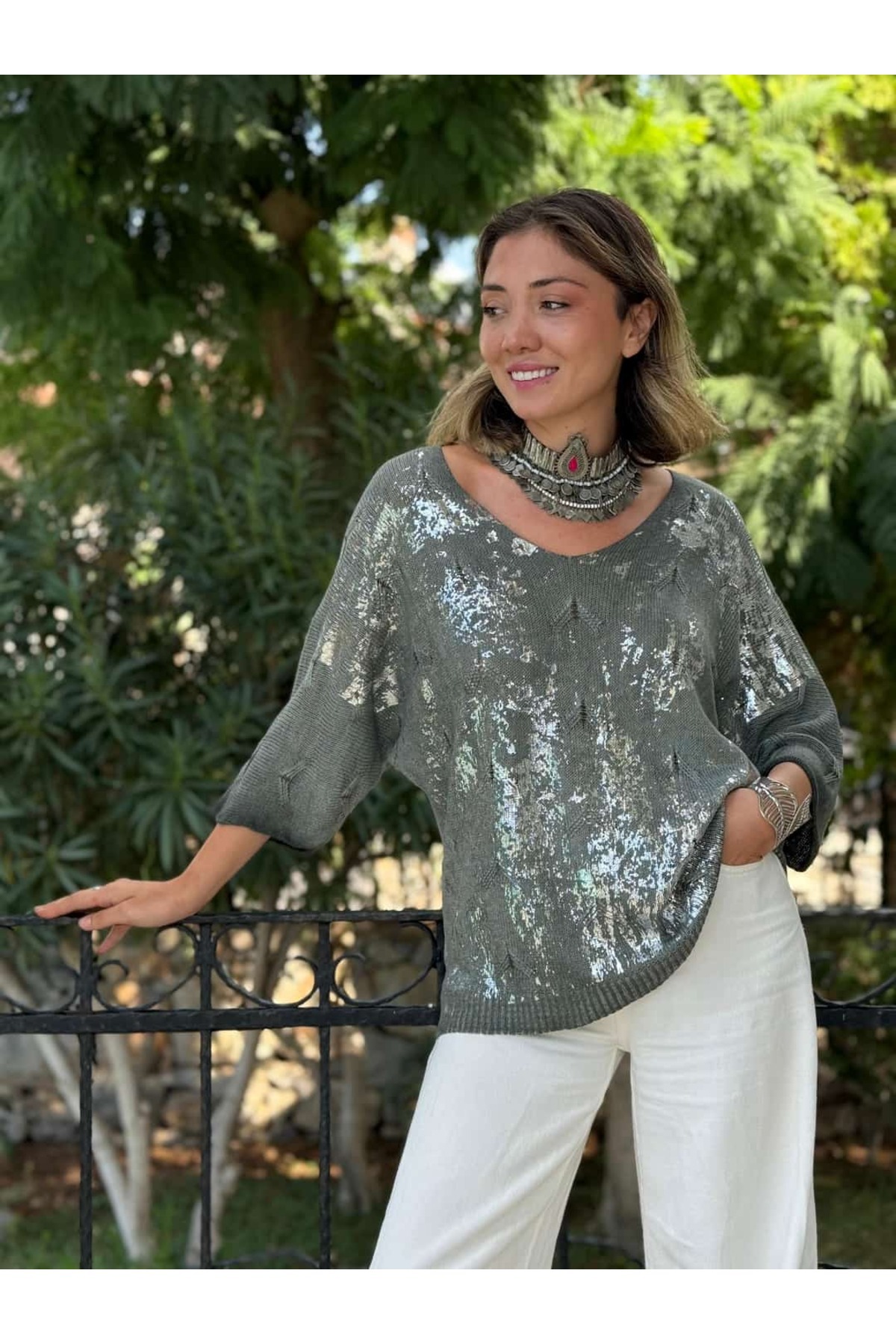 NC6016 İtalyan Fakir Kol Baskılı İnce Triko Bluz Haki NC6016 İtalyan Fakir Kol Baskılı İnce Triko Bluz Haki NC6016haki Standart