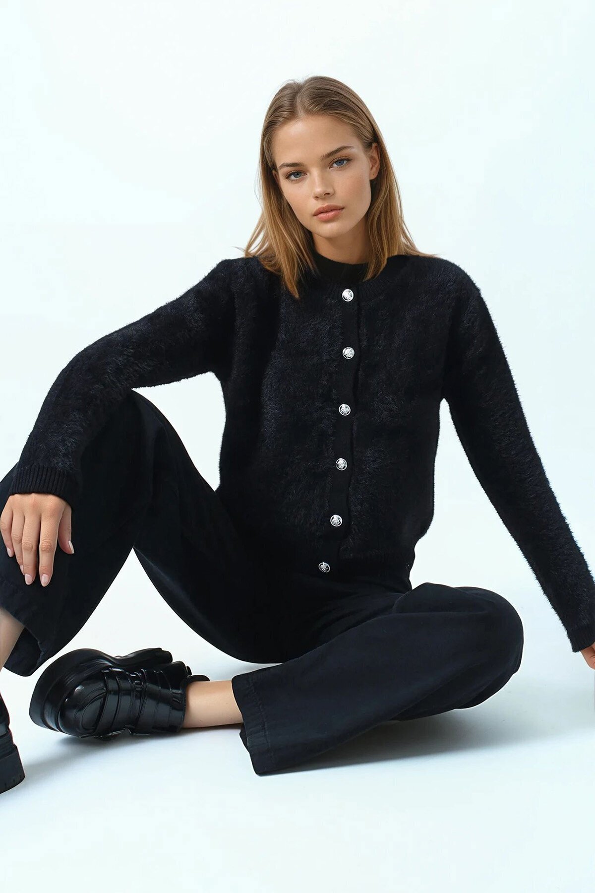Bisiklet Yaka Gold Düğmeli Triko Hırka Bisiklet Yaka Gold Düğmeli Triko Hırka VS01220 تک سایز