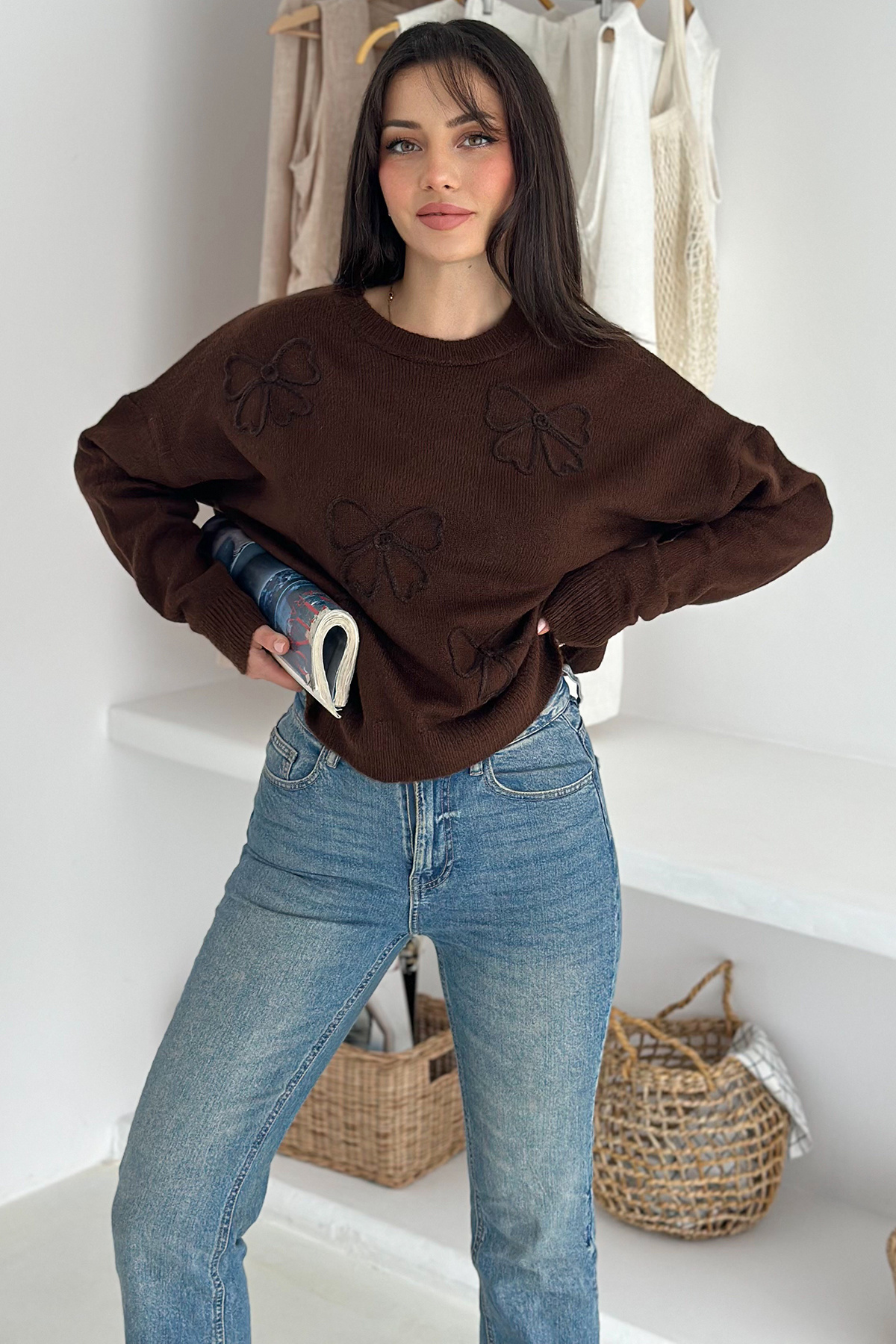 Kadın Kelebek Nakışlı Örgü Kazak – Naif & Dekoratif Stil Kadın Kelebek Nakışlı Örgü Kazak – Naif & Dekoratif Stil 2318-KAZAK Standart