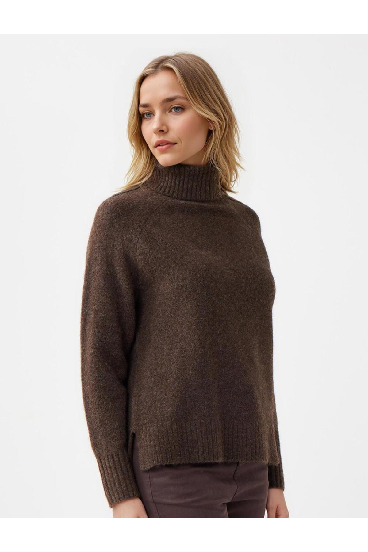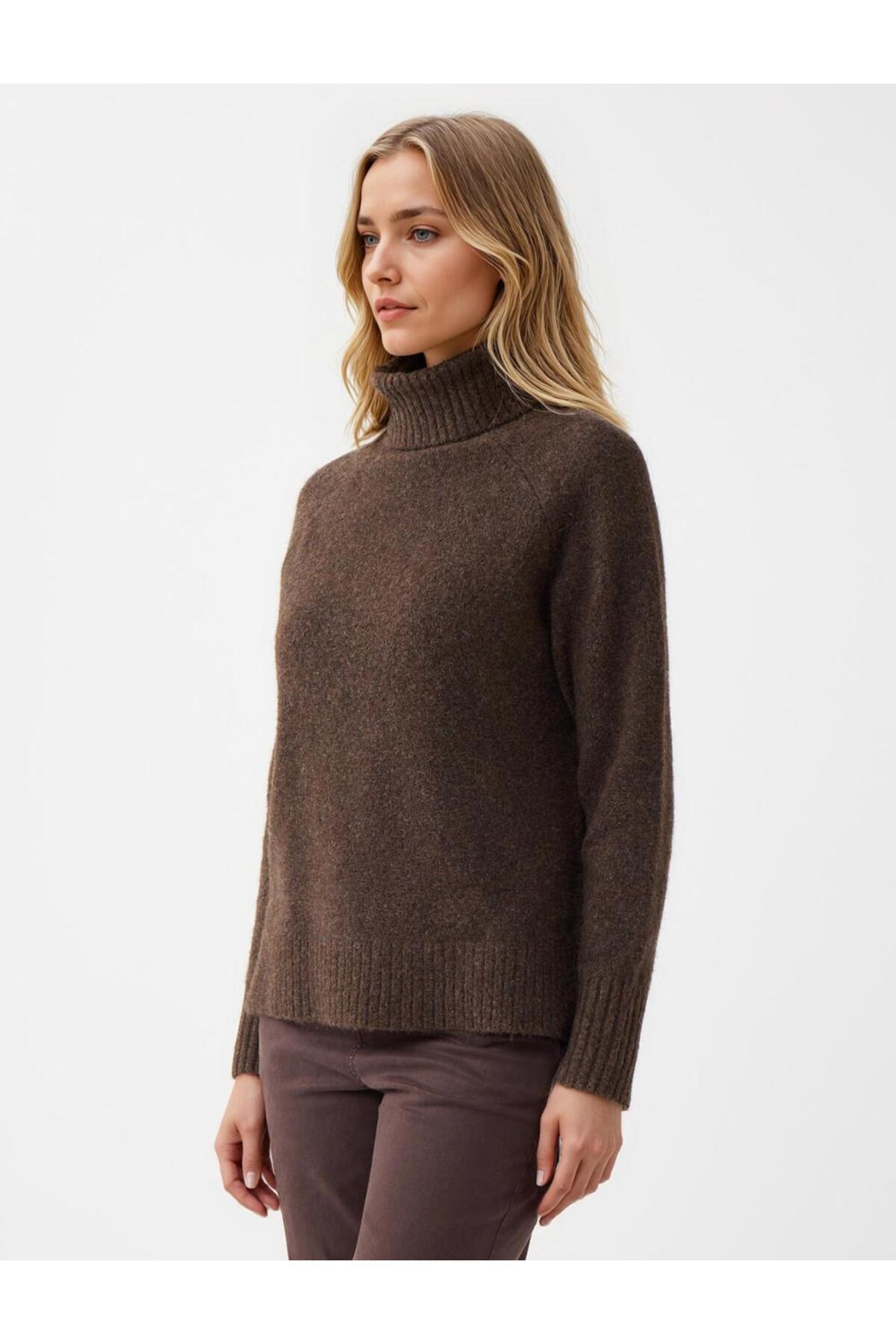 Acı Kahve Düz Kesim Balıkçı Yaka Triko Kazak Acı Kahve Düz Kesim Balıkçı Yaka Triko Kazak 5WW134094 XL