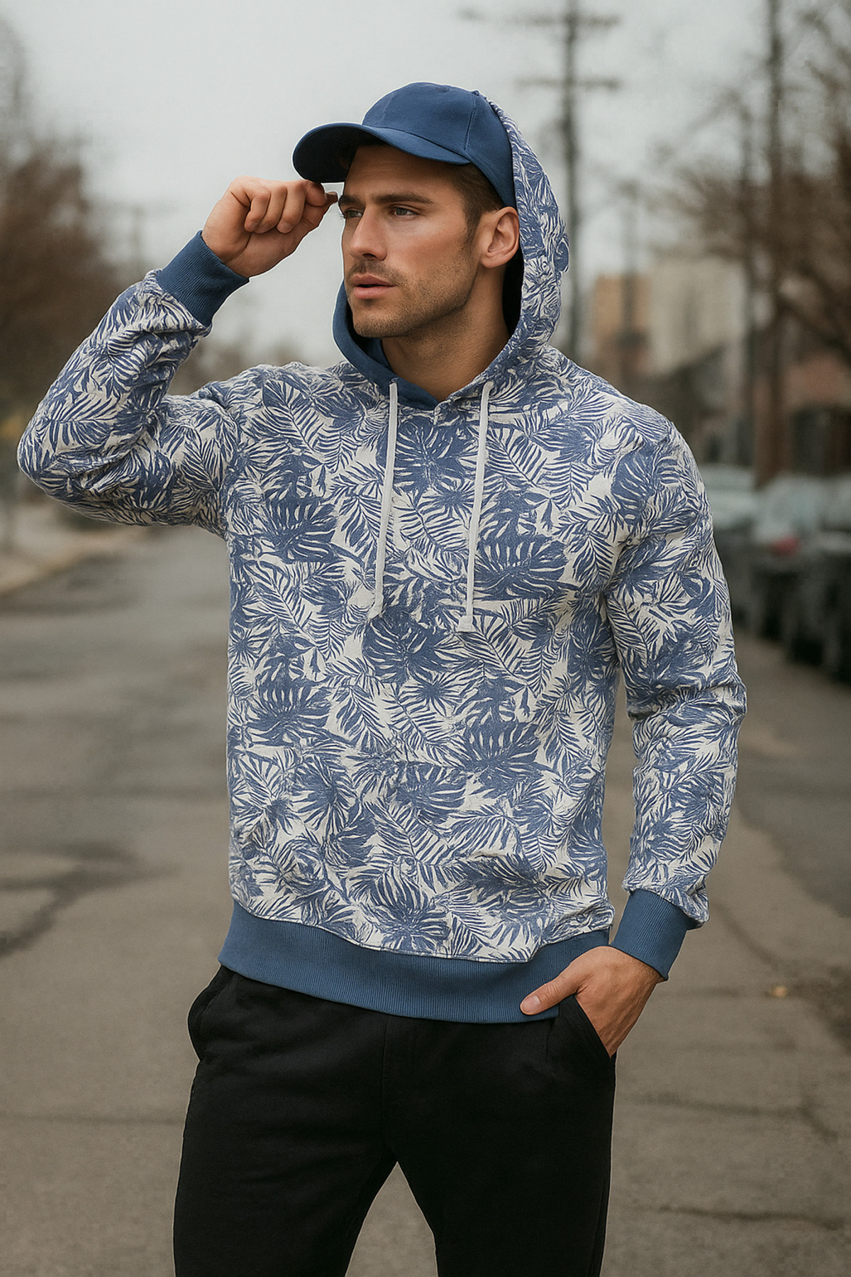 Erkek Desenli Cep Detaylı Basic Kapüşonlu Oversize Sweatshirt Erkek Desenli Cep Detaylı Basic Kapüşonlu Oversize Sweatshirt R26E1 2XL