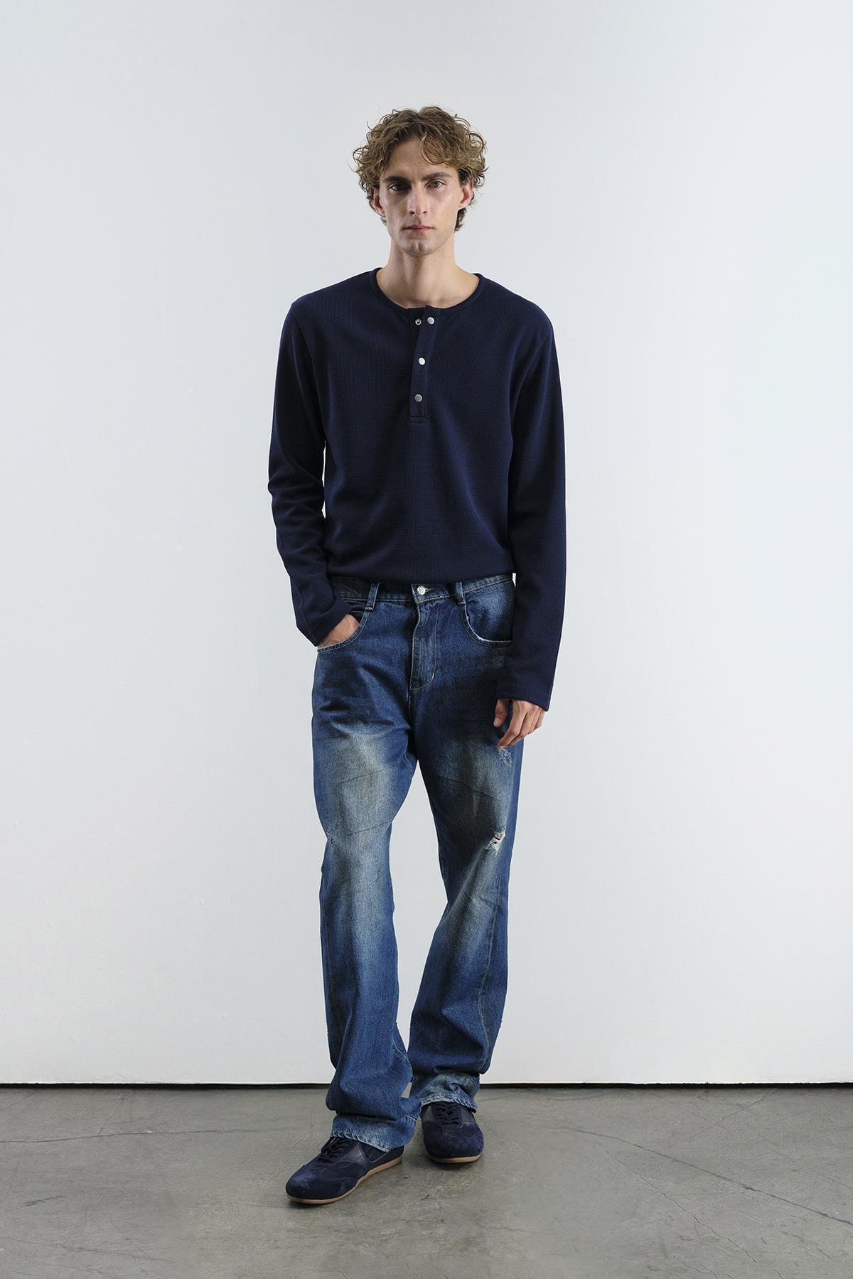METAL ÇITÇITLI UZUN KOLLU INDIGO T-SHIRT METAL ÇITÇITLI UZUN KOLLU INDIGO T-SHIRT GST20265726 L