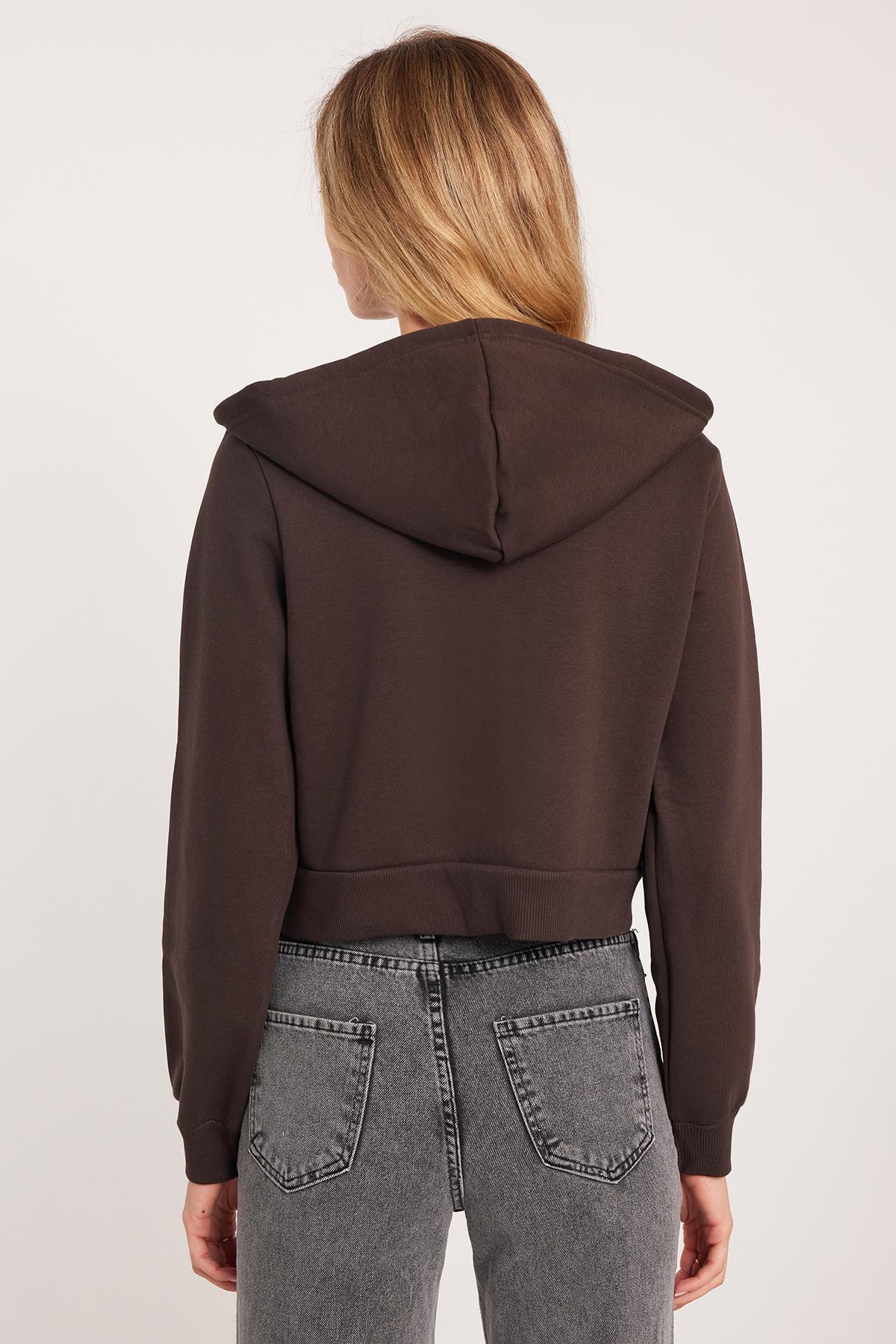 Kadın Slim Fit Dar Kesim Pamuklu Çift Cepli Kapüşonlu Fermuarlı Kahverengi Hırka Kadın Slim Fit Dar Kesim Pamuklu Çift Cepli Kapüşonlu Fermuarlı Kahverengi Hırka BYKZ2525 L