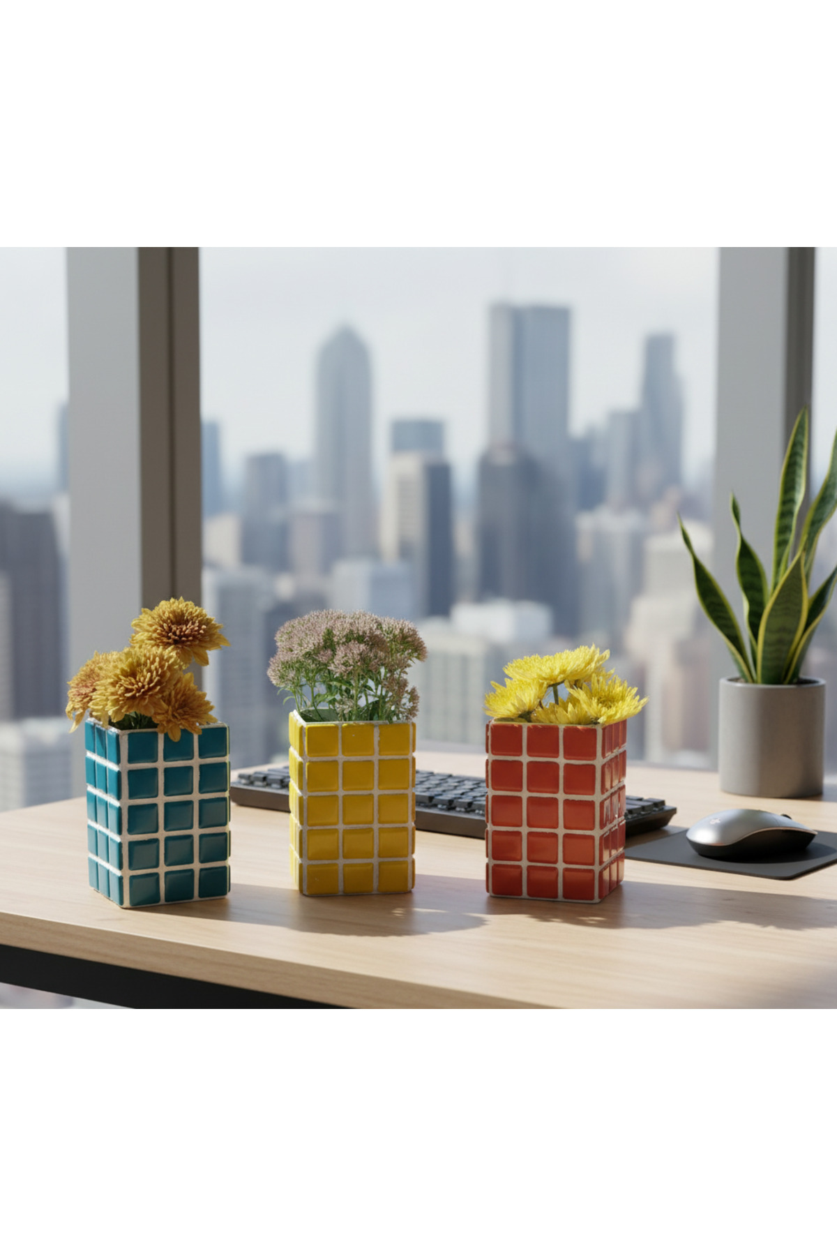 El Yapımı Mozaik Seramik Vazo – Renkli Geometrik Desenli Vazo El Yapımı Mozaik Seramik Vazo – Renkli Geometrik Desenli Vazo 123FLTVAZO1 تک سایز