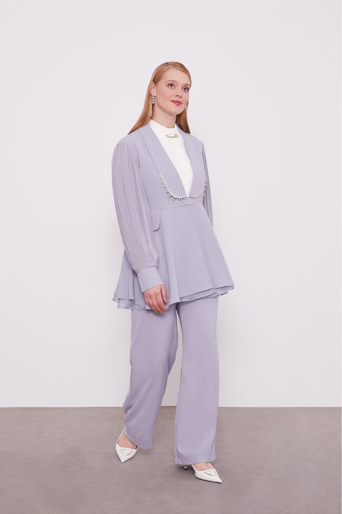 Bej Şifon Kollu Taş Detay İkili Takım Bej Şifon Kollu Taş Detay İkili Takım TYC33877CF991263B7D927200 44