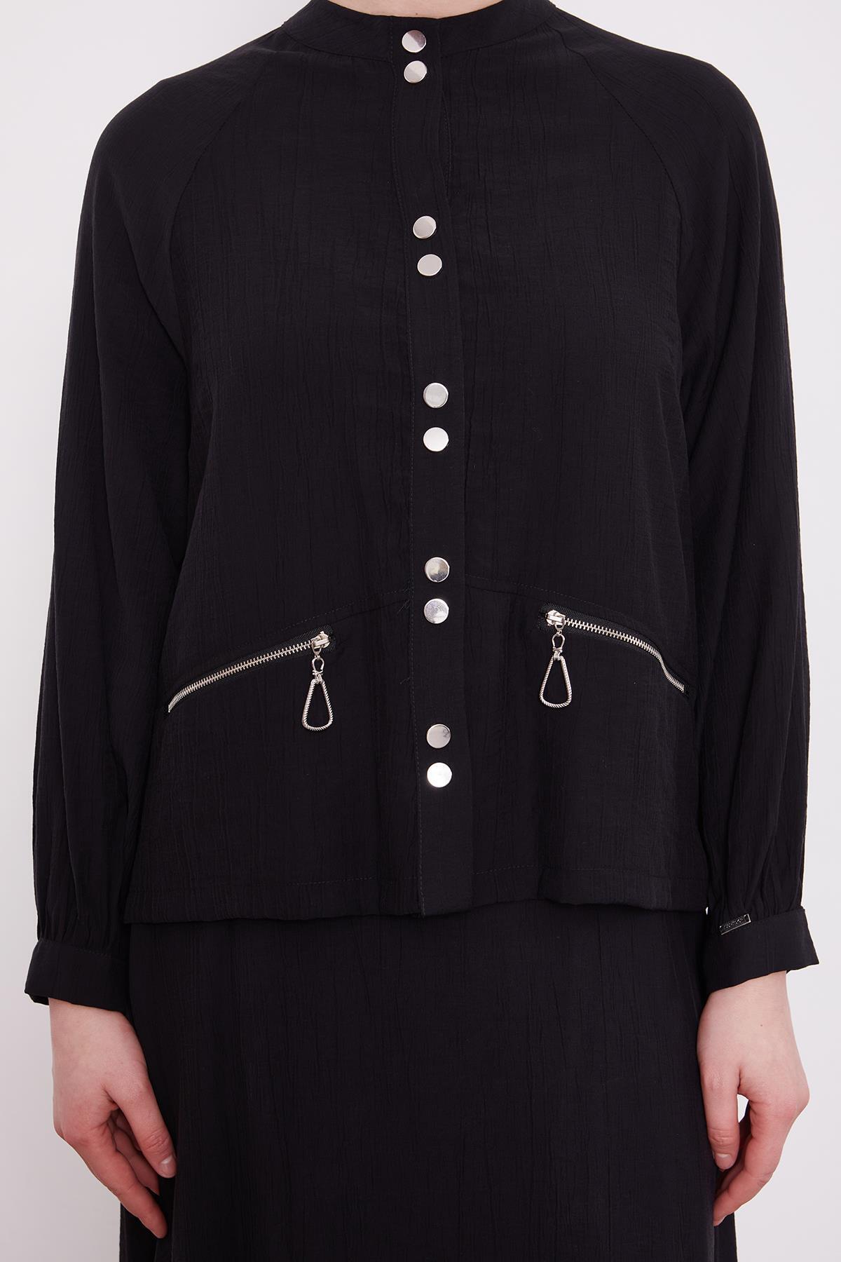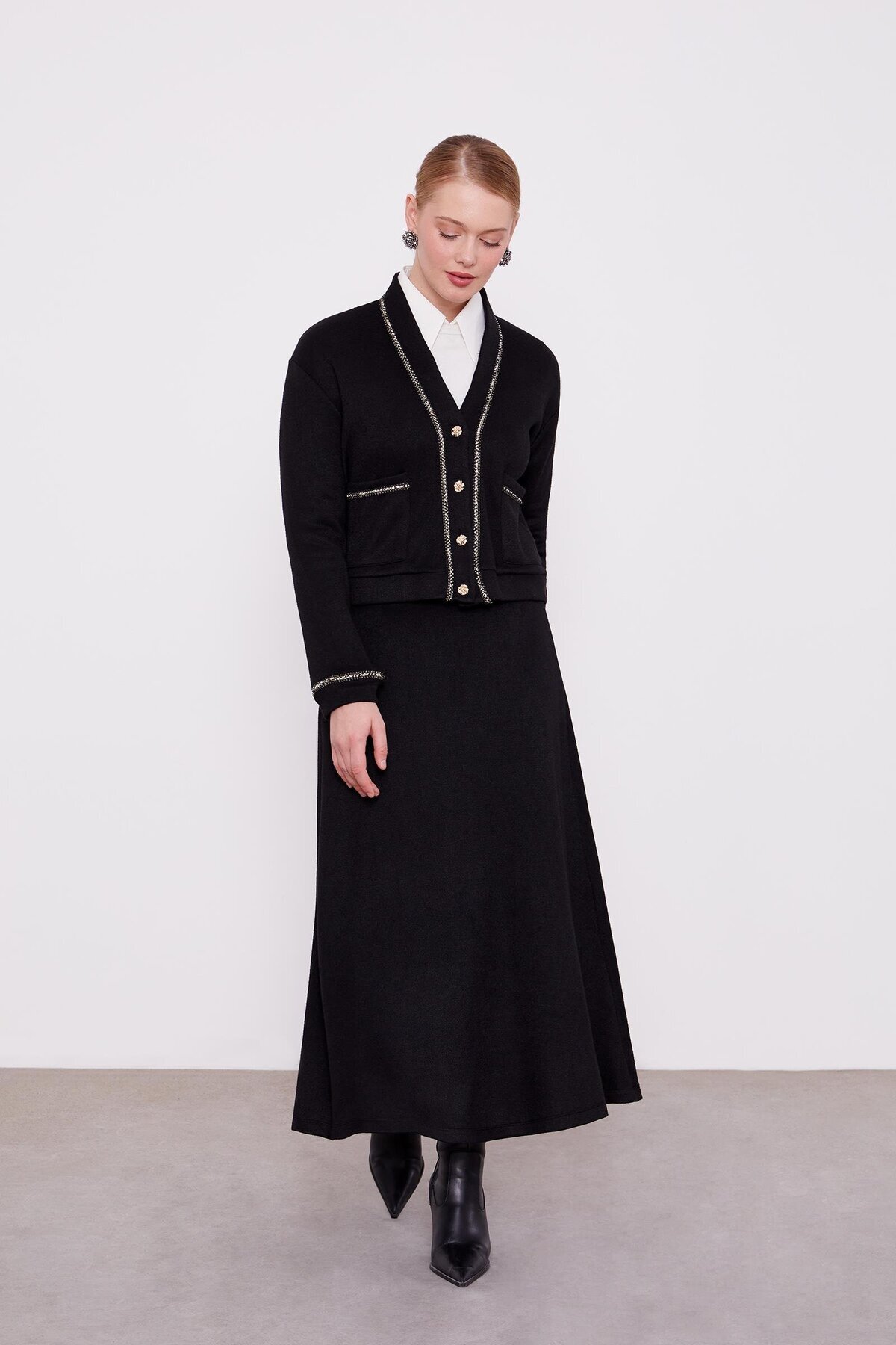 Siyah Çift Düğme Detaylı Etekli Takım Siyah Çift Düğme Detaylı Etekli Takım 100502 44