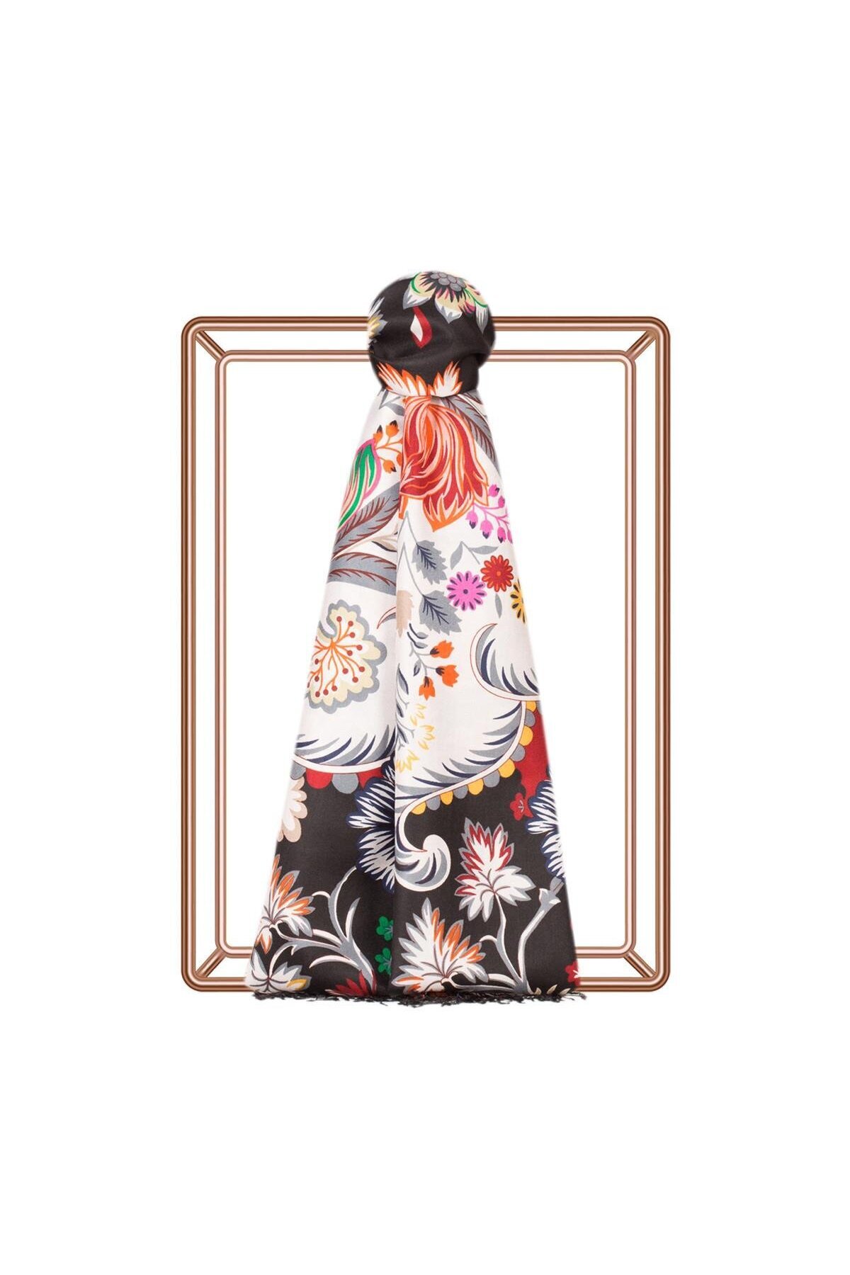 İpek Ağacı Desenli İpek Şal 06435-Siyah Gold İpek Ağacı Desenli İpek Şal 06435-Siyah Gold 70 x 200