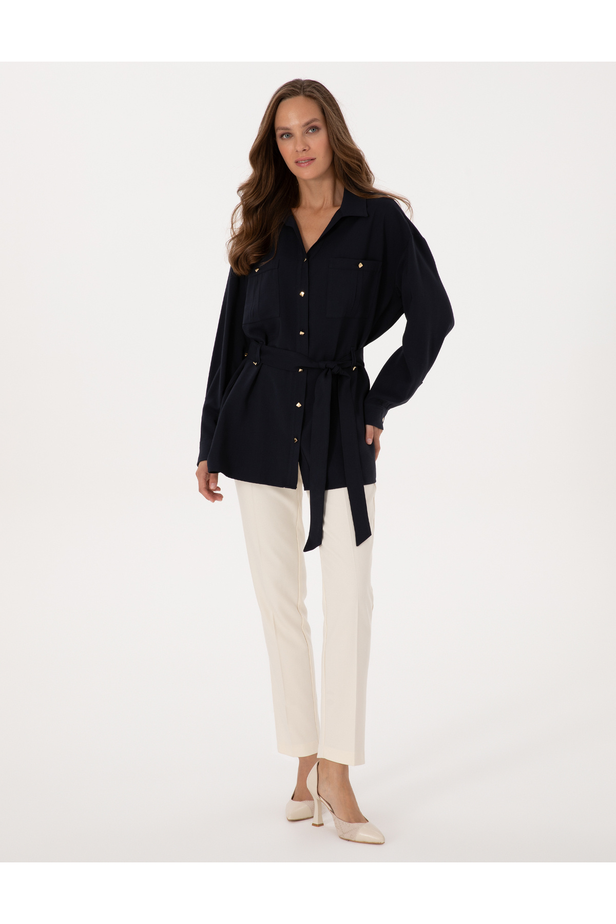 Lacivert Oversize Uzun Kollu Gömlek 50314120-VR033 Lacivert Oversize Uzun Kollu Gömlek 50314120-VR033 44