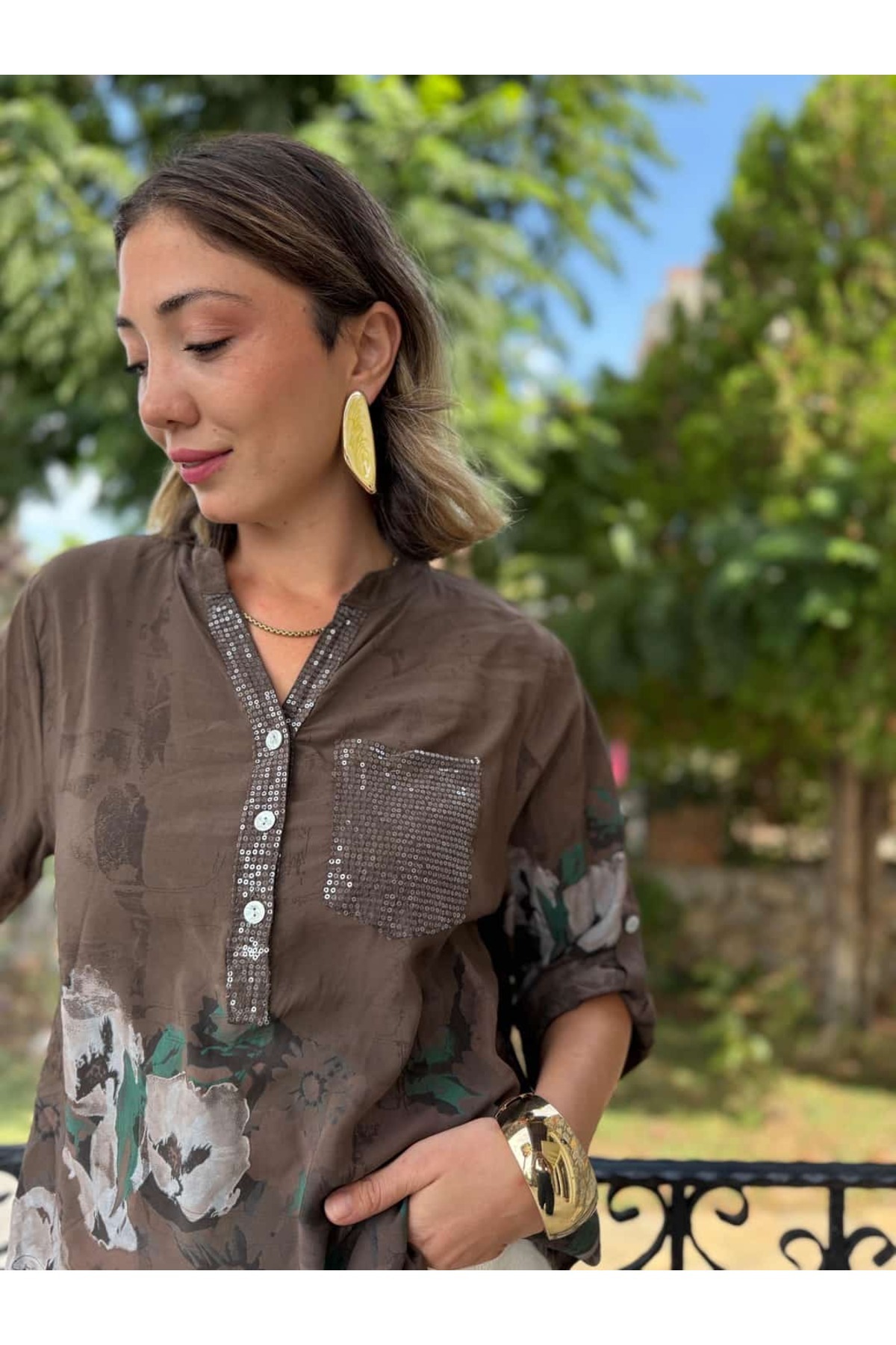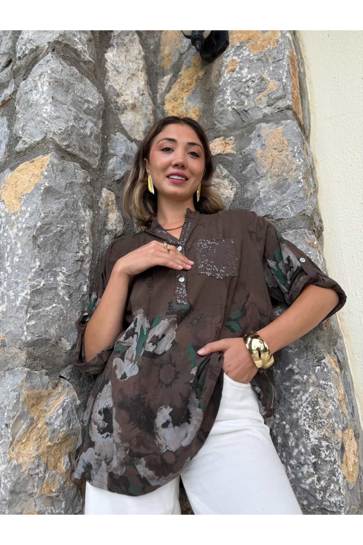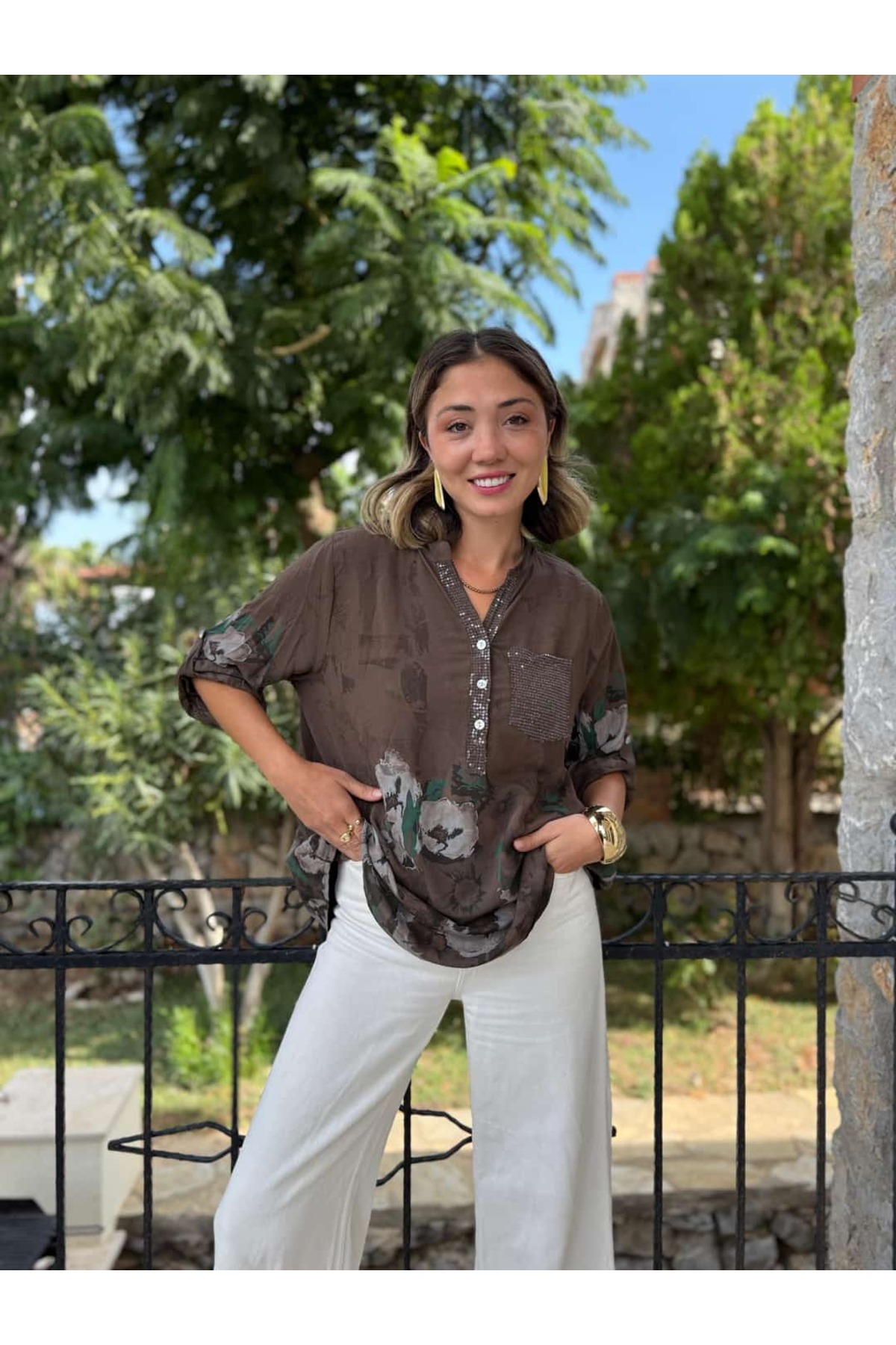 NC15430 İtalyan Coton Bluz Kahve NC15430 İtalyan Coton Bluz Kahve NC15430kahve Standart