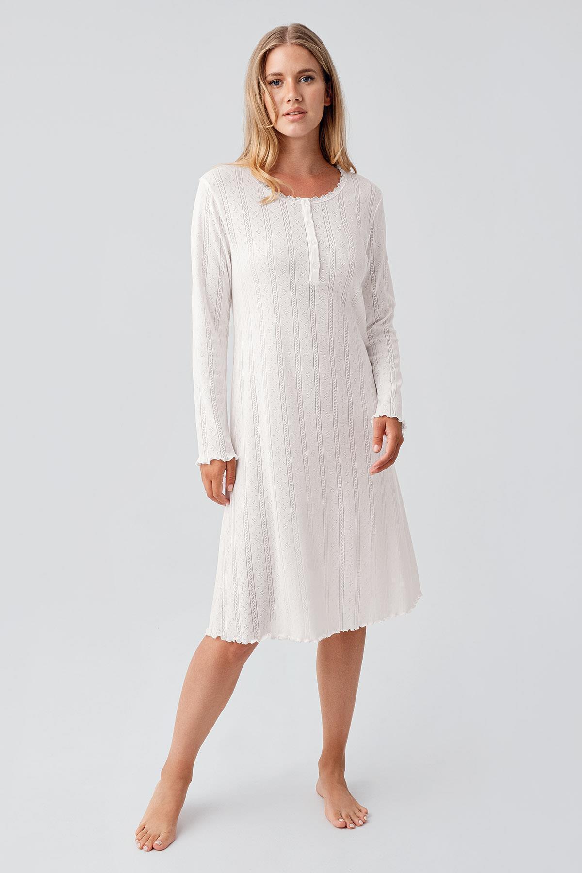Uzun Kollu Dantelli Düğmeli Esnek Viskoz Gecelik Uzun Kollu Dantelli Düğmeli Esnek Viskoz Gecelik 18105 4XL