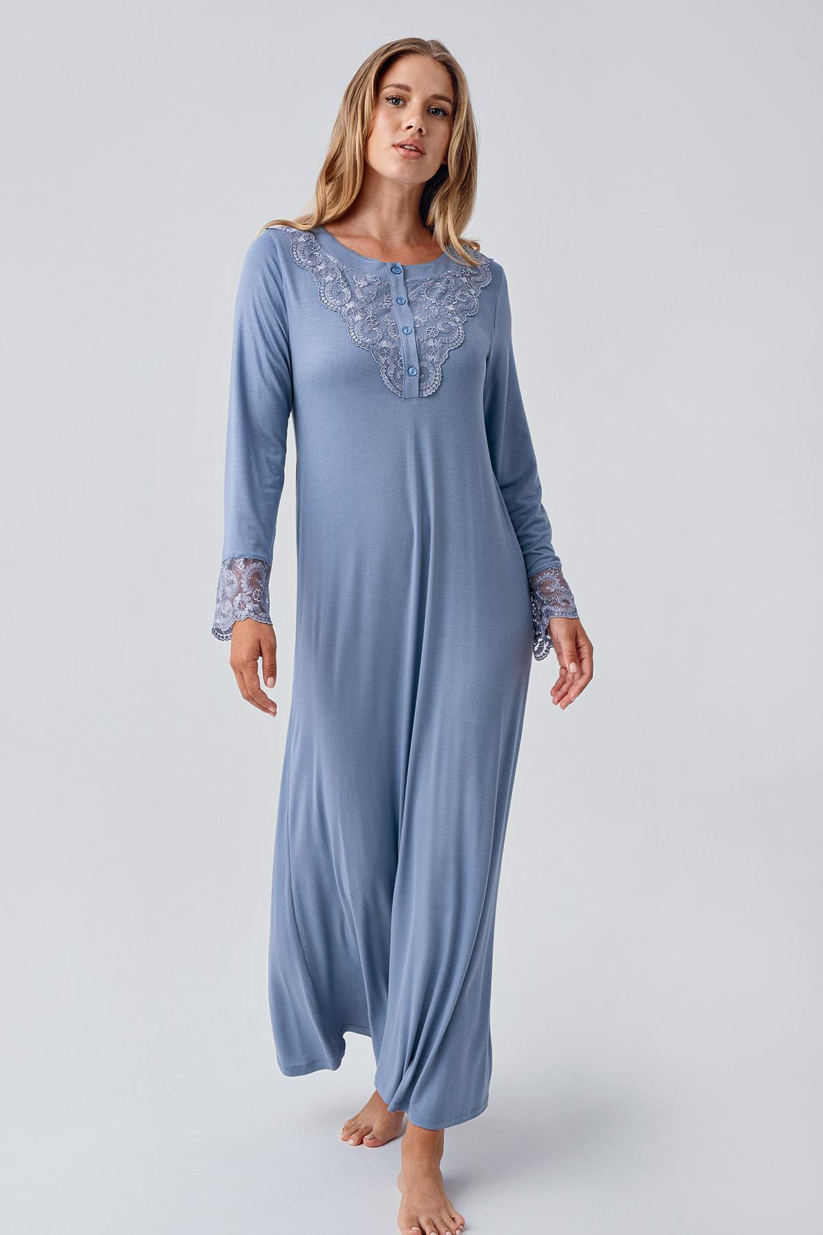 Uzun Kollu Dantelli Düğmeli Esnek Viskoz Gecelik Uzun Kollu Dantelli Düğmeli Esnek Viskoz Gecelik 18105 4XL