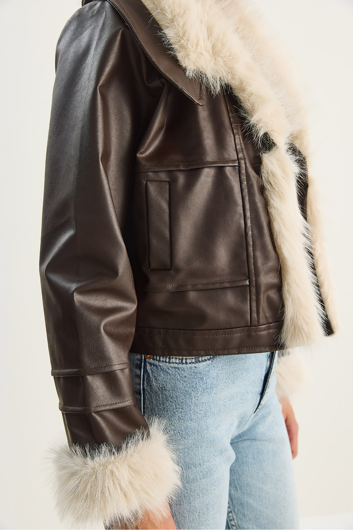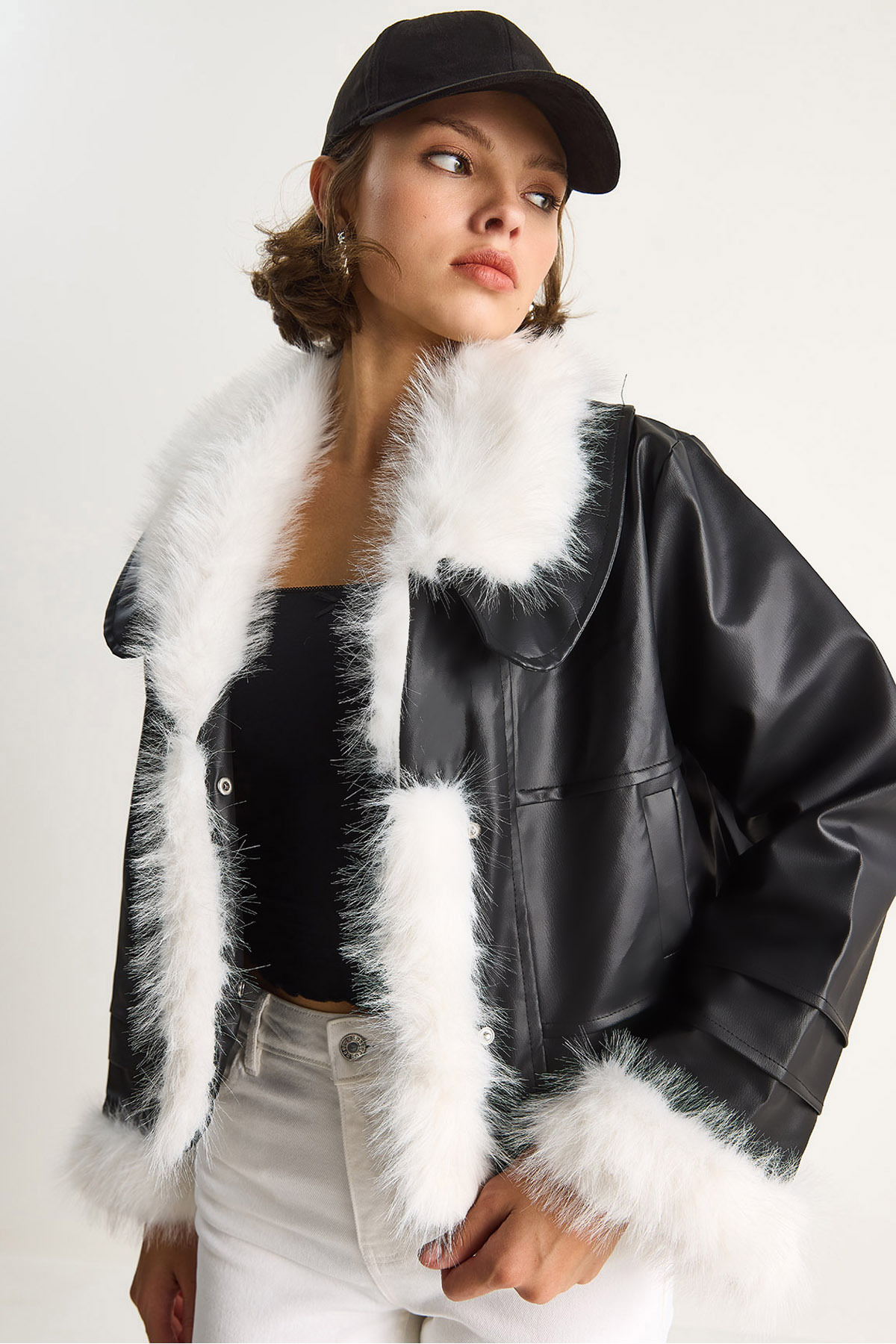 Kadın Yakası Ve Kolları Kürklü Suni Deri Ceket 2760 60261576 Kadın Yakası Ve Kolları Kürklü Suni Deri Ceket 2760 60261576 40