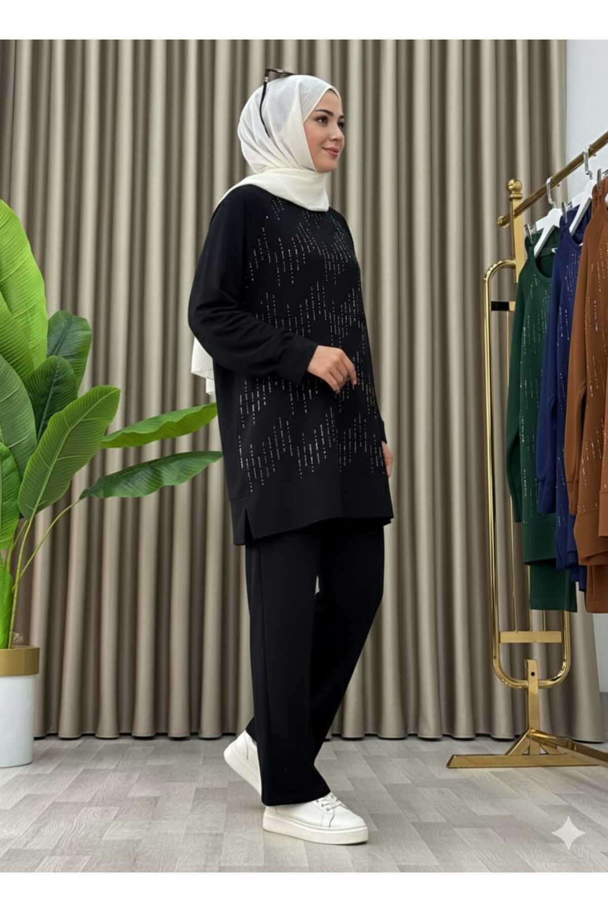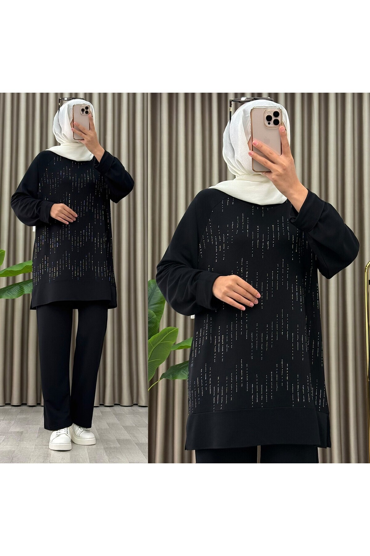 Taş Baskı Desenli Tunik Pantolon İkili Takım Taş Baskı Desenli Tunik Pantolon İkili Takım moly4003 4