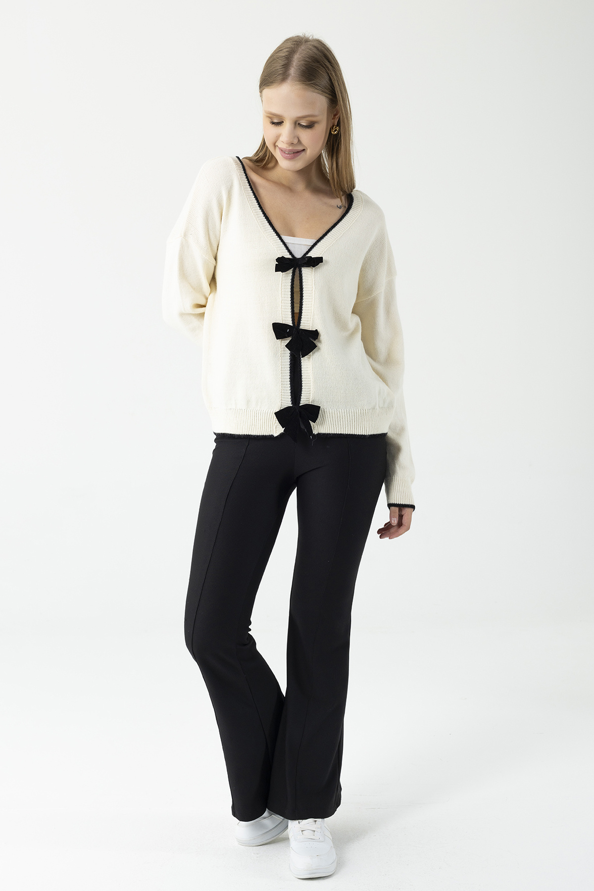 Kadın V Yaka Kurdele Detaylı Triko Hırka Krem - 26K 2279 Kadın V Yaka Kurdele Detaylı Triko Hırka Krem - 26K 2279 1649-26K2279 Standart