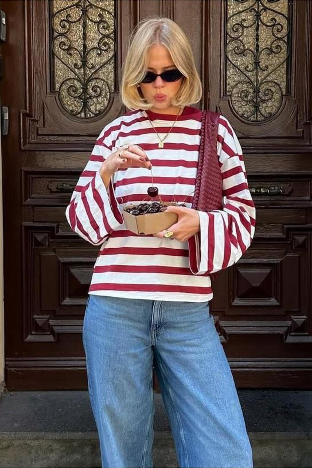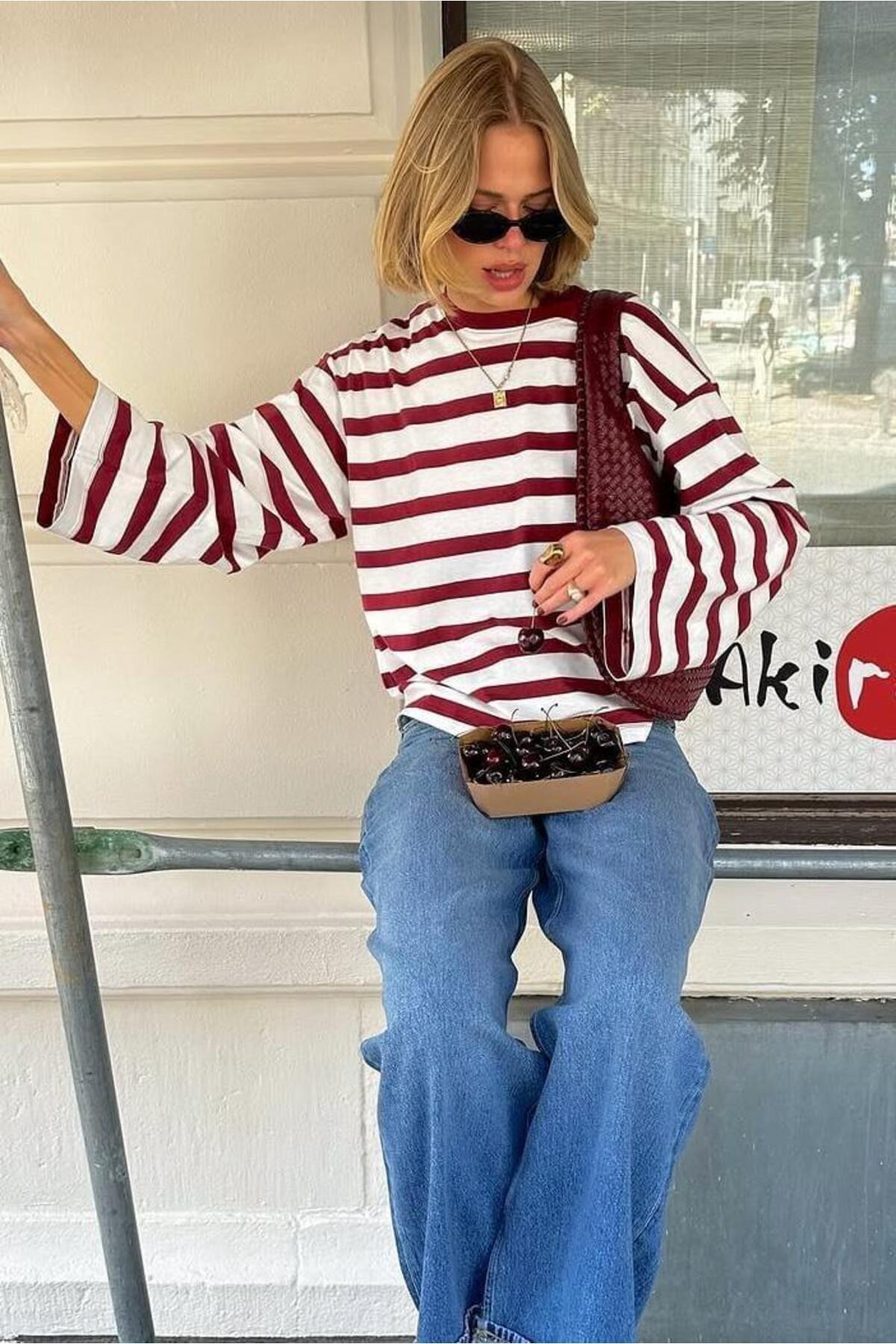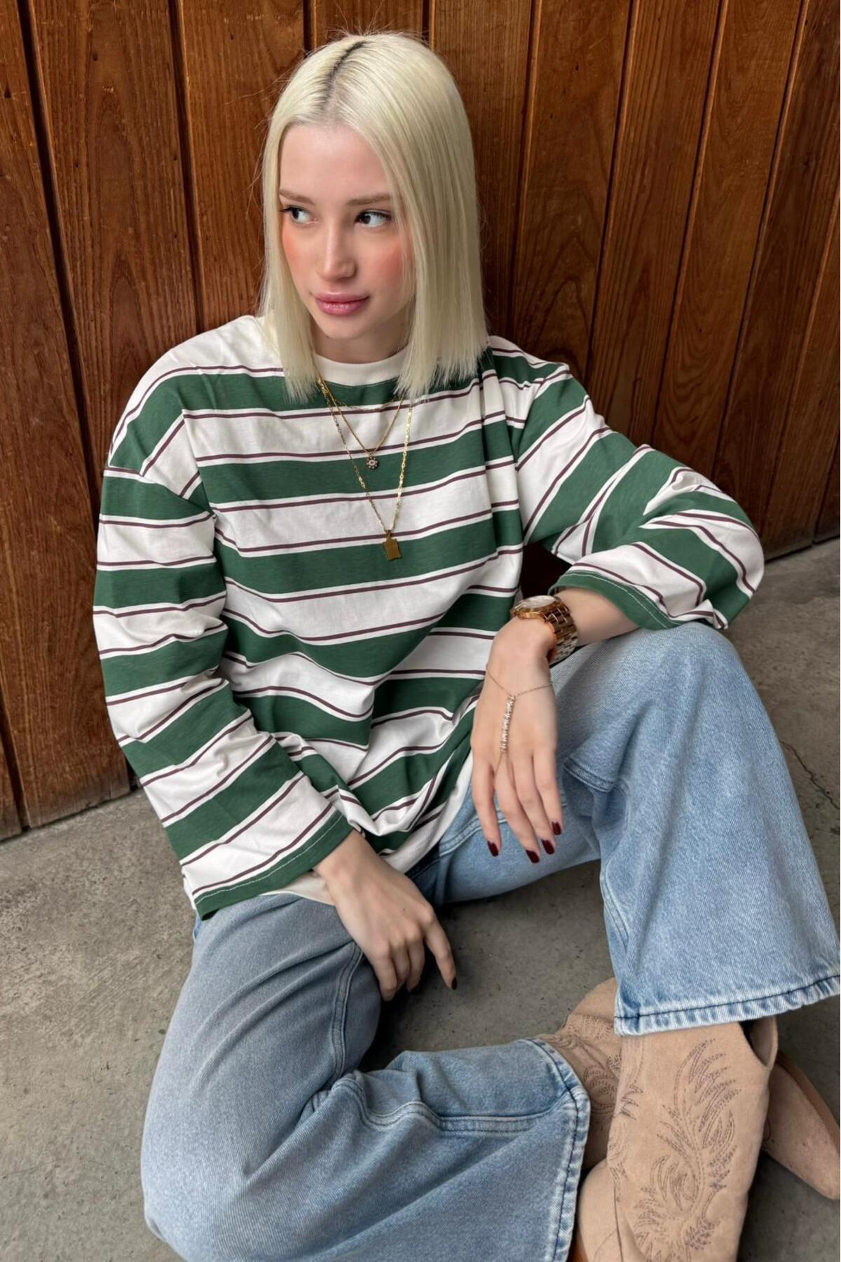 Ekru Çizgili Uzun Kollu Kadın T-shirt MG2571 Ekru Çizgili Uzun Kollu Kadın T-shirt MG2571 XL