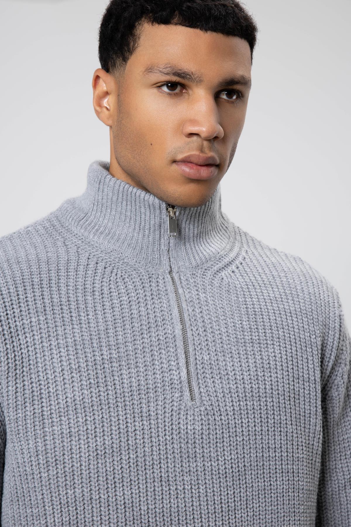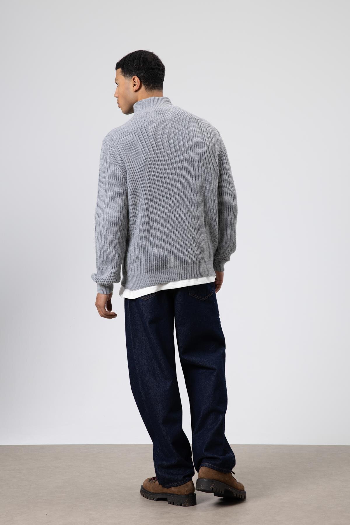 Fermuarlı Örme Triko Kazak Gri Melanj Fermuarlı Örme Triko Kazak Gri Melanj V60-11 XL