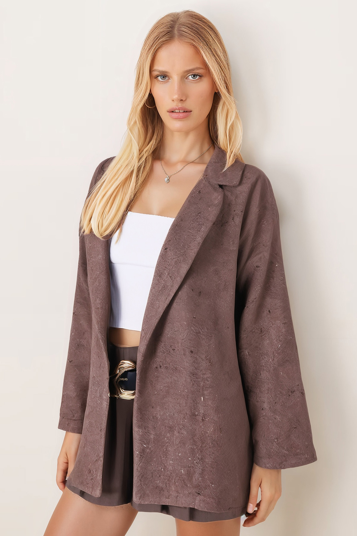 Kadın Kahverengi Erkek Yaka Yanları Yırtmaçlı Oversize Ceket ARM-26K001009 Kadın Kahverengi Erkek Yaka Yanları Yırtmaçlı Oversize Ceket ARM-26K001009 XL