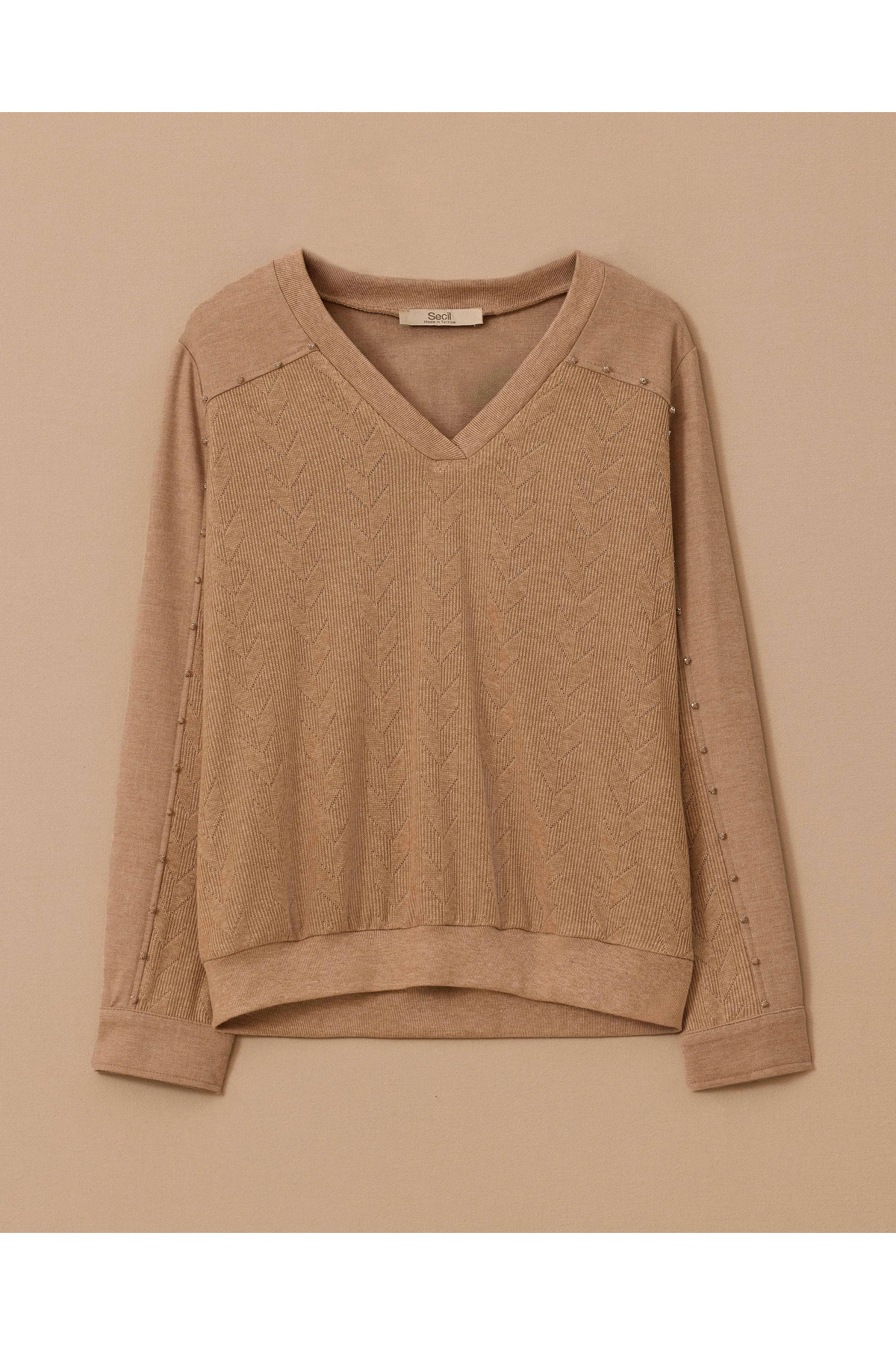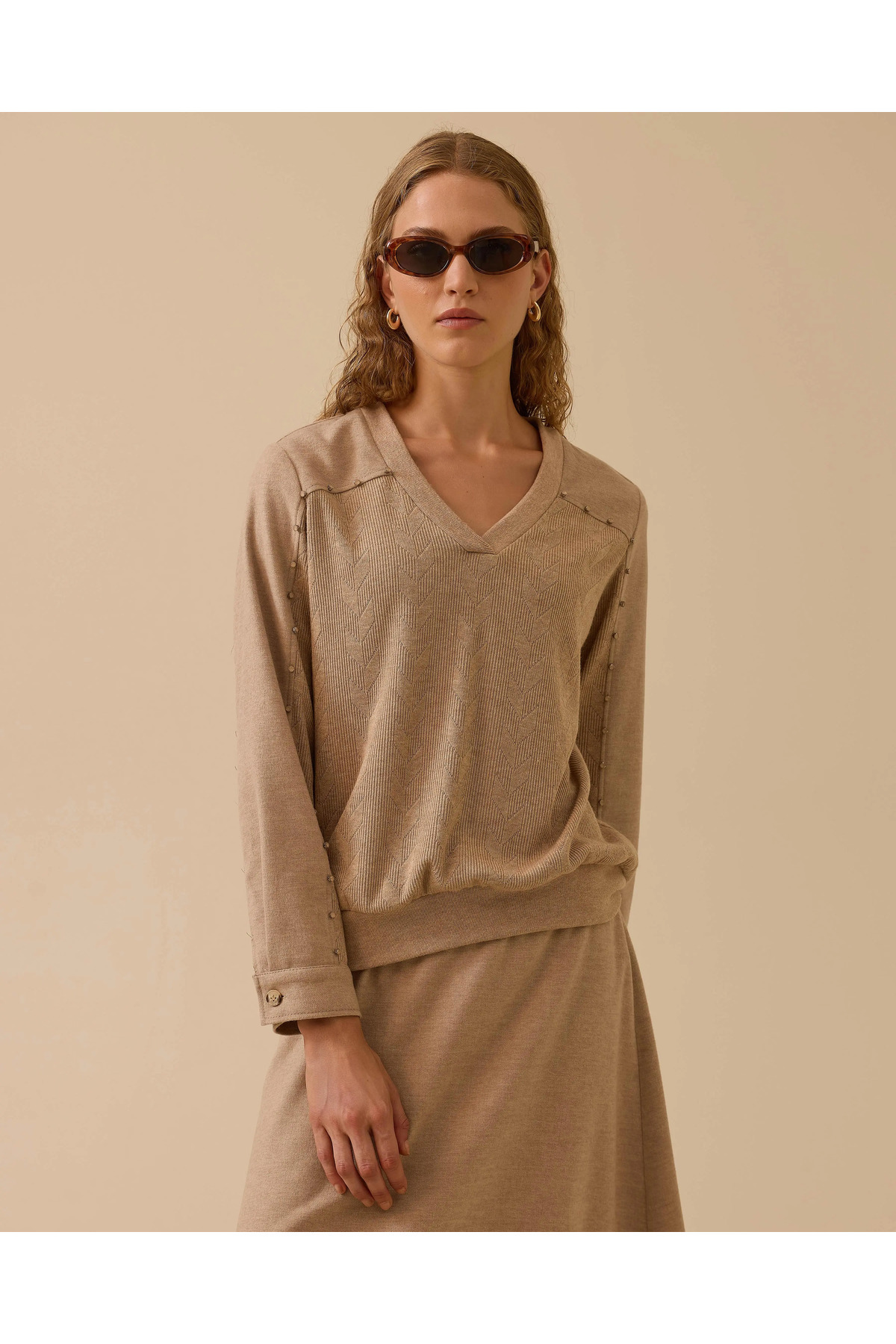 V Yaka Omuz Aksesuarlı Bluz V Yaka Omuz Aksesuarlı Bluz 10002521810007 XL