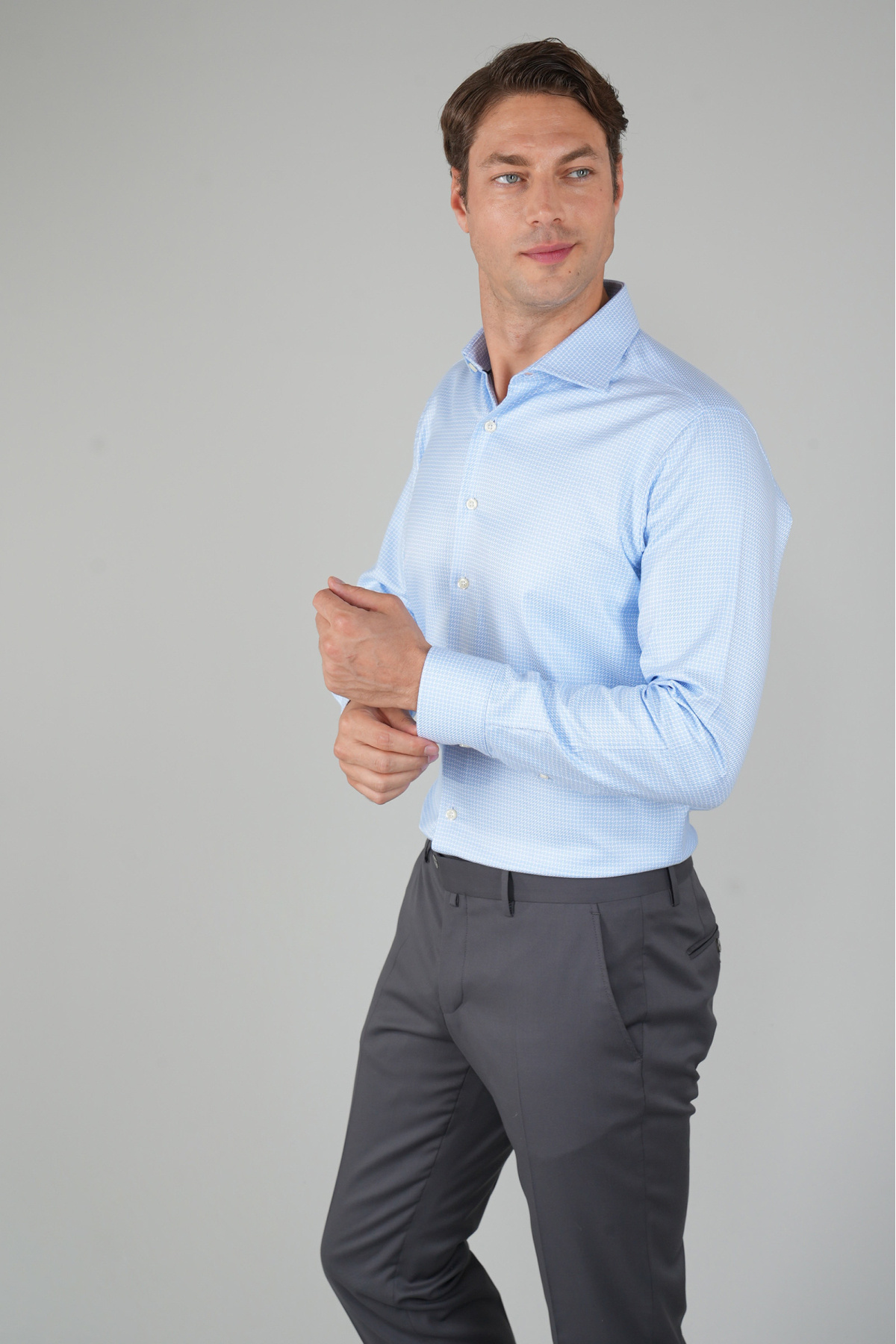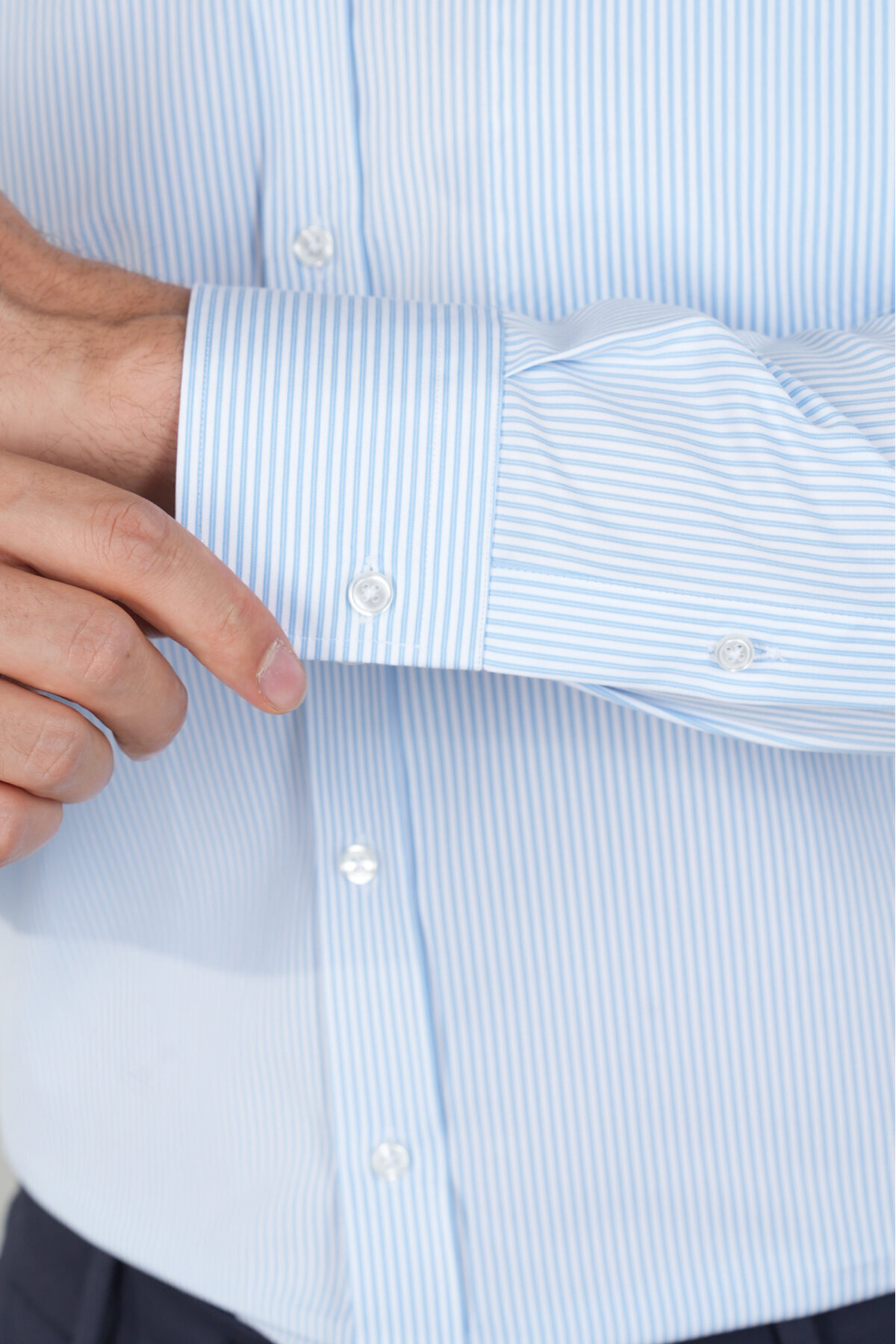 Erkek Uzun Kollu Mavi Çizgili Pamuk Gömlek Erkek Uzun Kollu Mavi Çizgili Pamuk Gömlek GMCZG252076_33 2XL