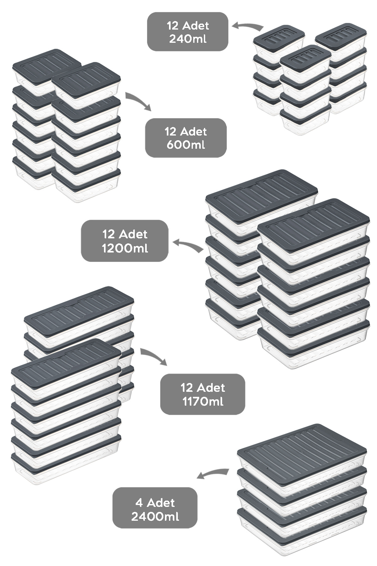 52'li Buzdolabı Organizer Set - Mikrodalgaya Uygun Düzenleyici Difriz Saklama Kabı Antrasit 52'li Buzdolabı Organizer Set - Mikrodalgaya Uygun Düzenleyici Difriz Saklama Kabı Antrasit MCH-3418 تک سایز