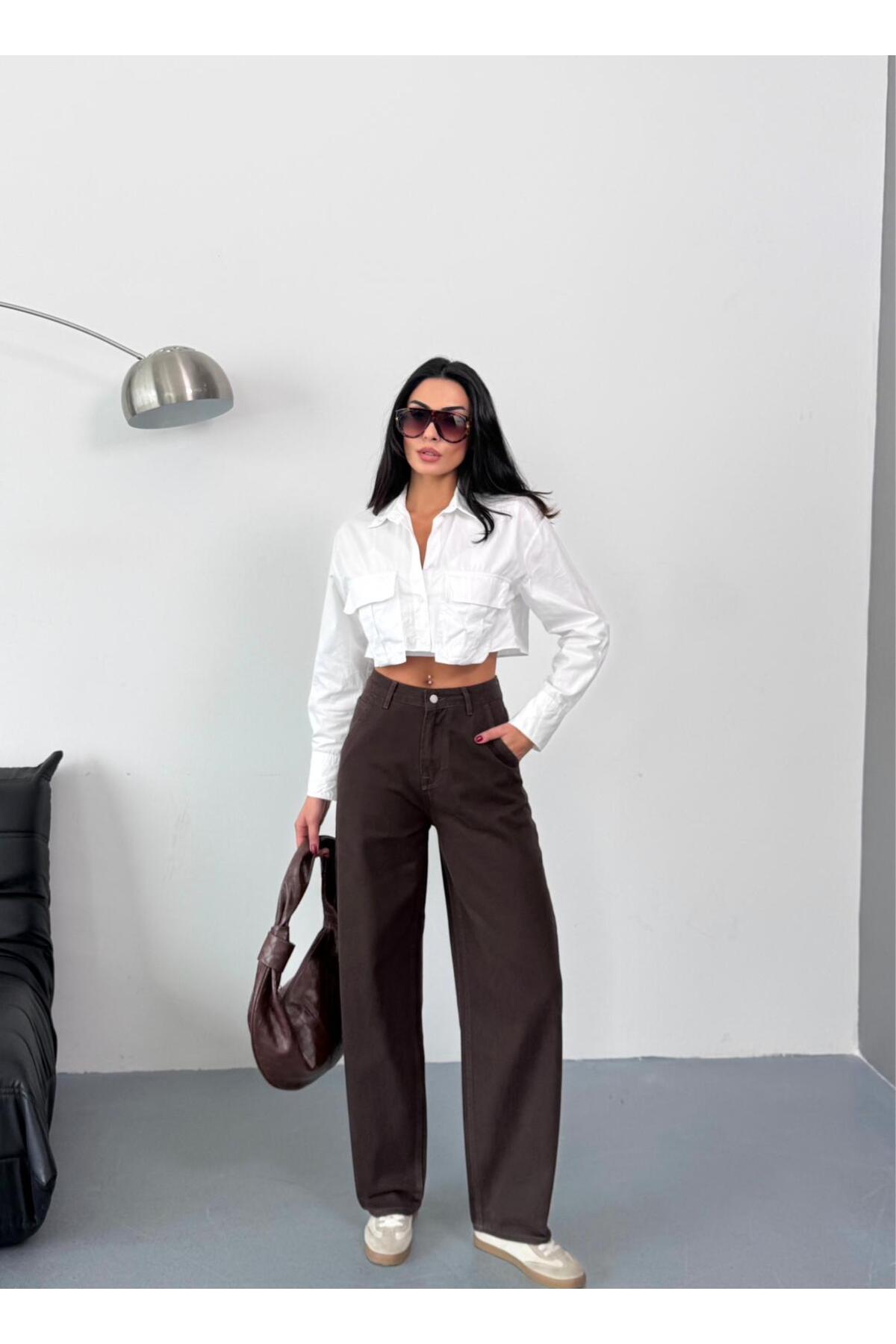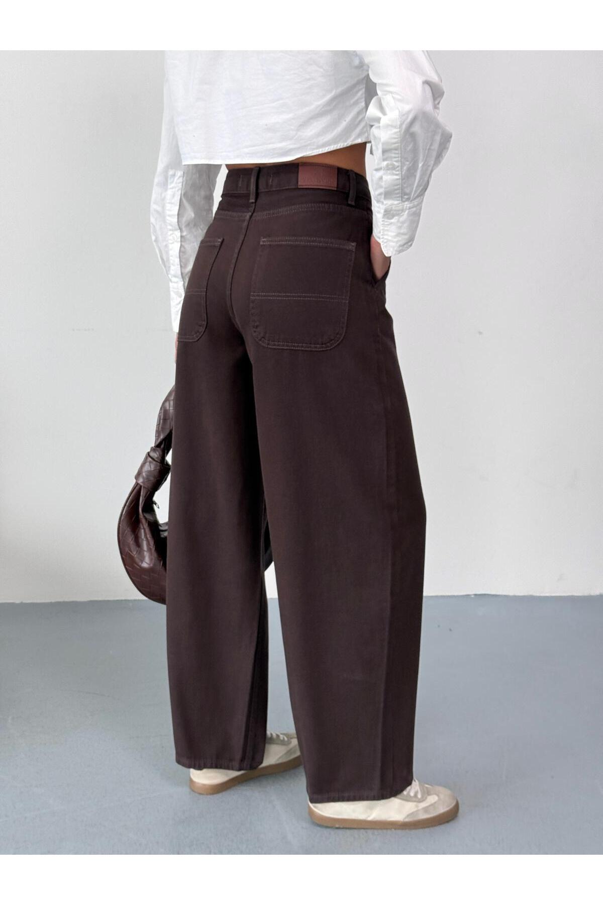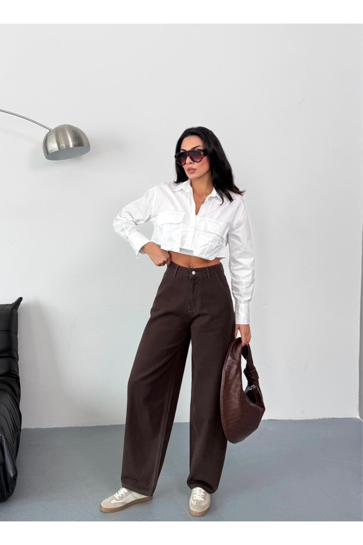 KADIN KAHVERENGİ SKATER FİT YÜKSEK BEL GENİŞ PAÇA KOT PANTOLON KADIN KAHVERENGİ SKATER FİT YÜKSEK BEL GENİŞ PAÇA KOT PANTOLON 5010- 44